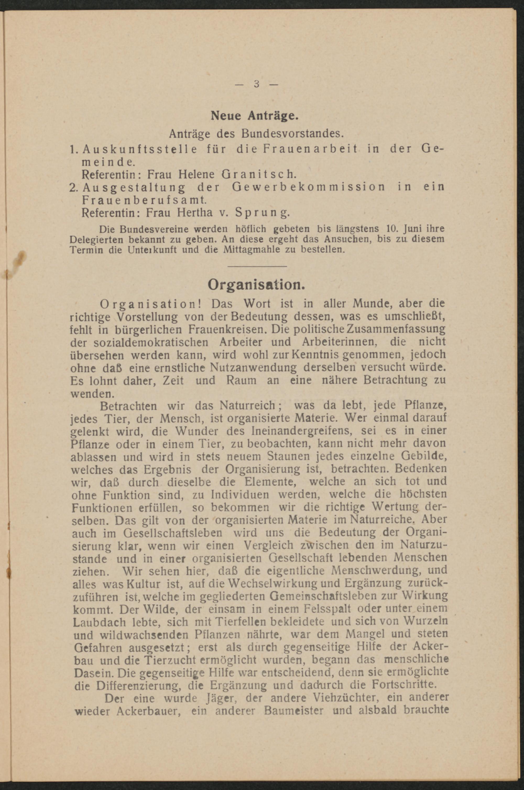 Referentin: Frau Hertha v. Sprung.