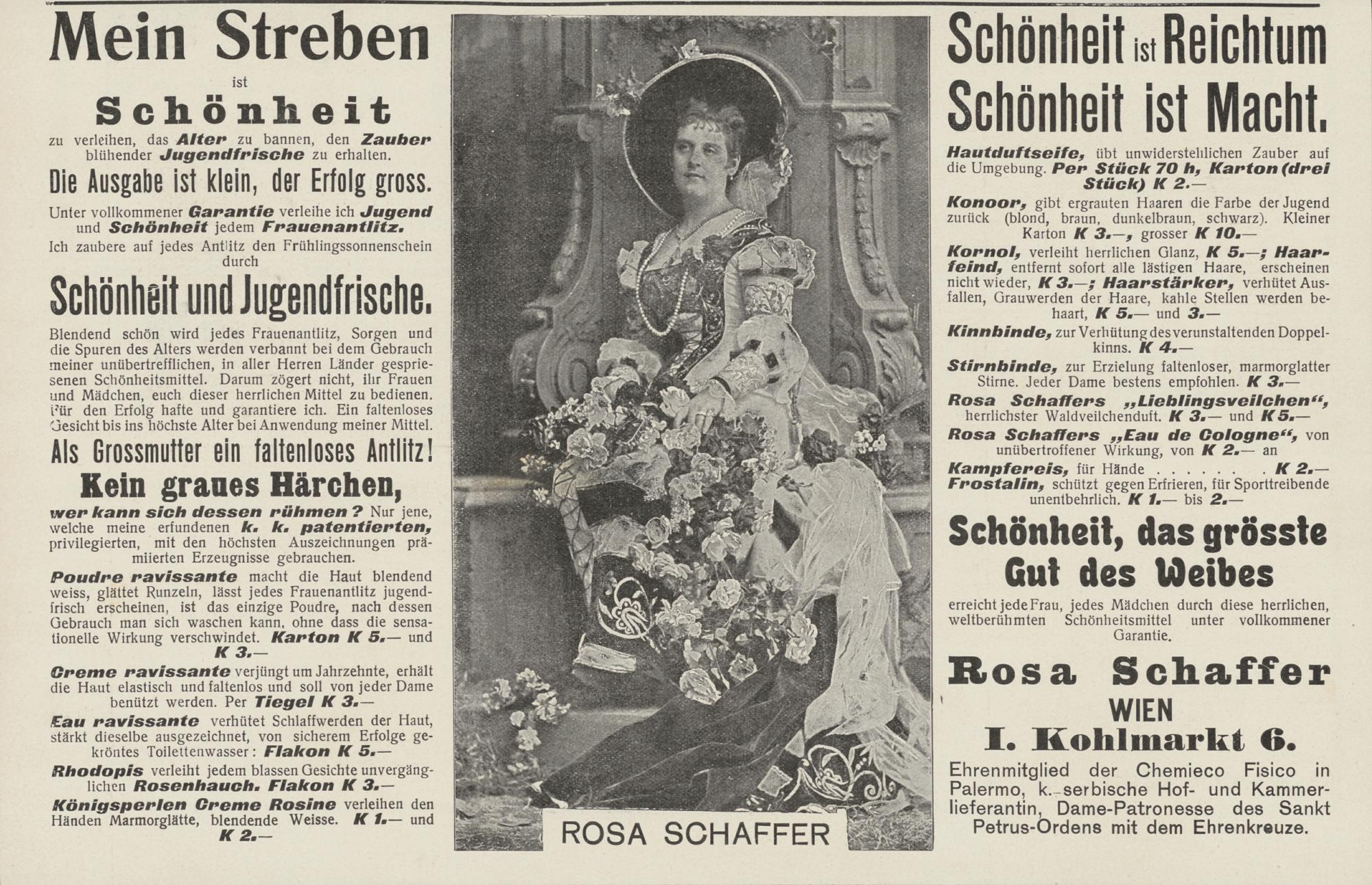 Unter vollkommener Garantie verleihe ich Jugendund Schönheit jedem Frauenantlitz .