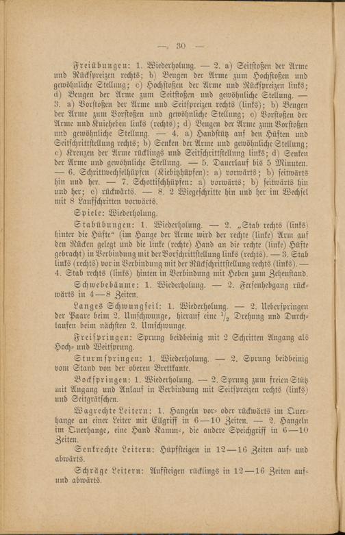 Freiübungen: 1. Wiederholung. — 2. n) Seitstoßen der Armeund Rückspreizen rechts; d) Beugen der Arme zum Hochstoßen undgewöhnliche Stellung; o) Hochstoßen der Arme und Rückspreizen links;ä) Beugen der Arme zum Seitstoßen und gewöhnliche Stellung. —