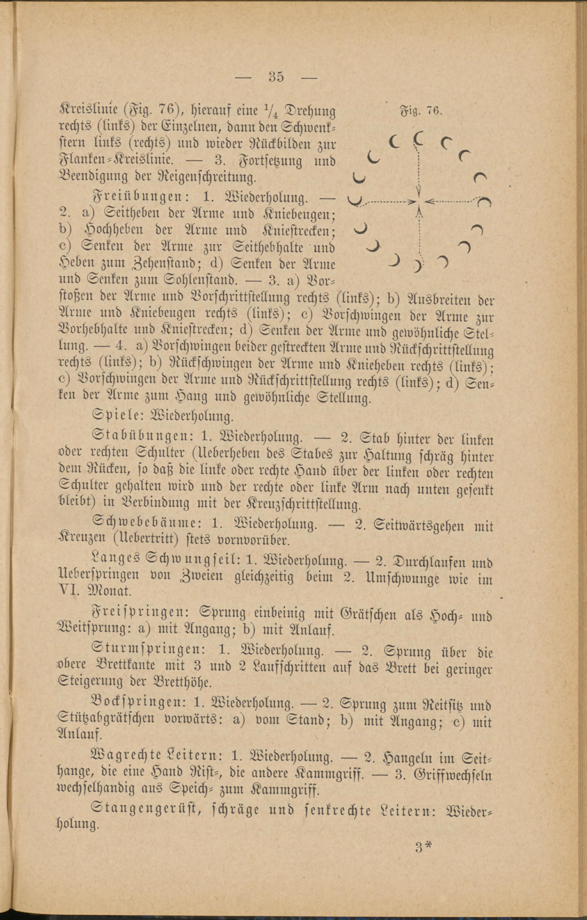 und Senken zum Sohlenstand. — 3. n) Vor-stoßen der Arme und Vorschrittstellnng rechts (links); ll) Ausbreiten derArme und Kniebeugen rechts (links); o) Vorschwingen der Arme znrVorhebhalte und Kniestrecken; ck) Senken der Arme und gewöhnliche Stel-lung. — 4. a) Vorschwingen beider gestreckten Arme und Rückschrittstellnngrechts (links); d) Rückschwingen der Arme und Knieheben rechts (links);o) Vorschwingen der Arme und Rückschrittstellung rechts (links); ä) Sen-ken der Arme zum Haug und gewöhnliche Stellung.