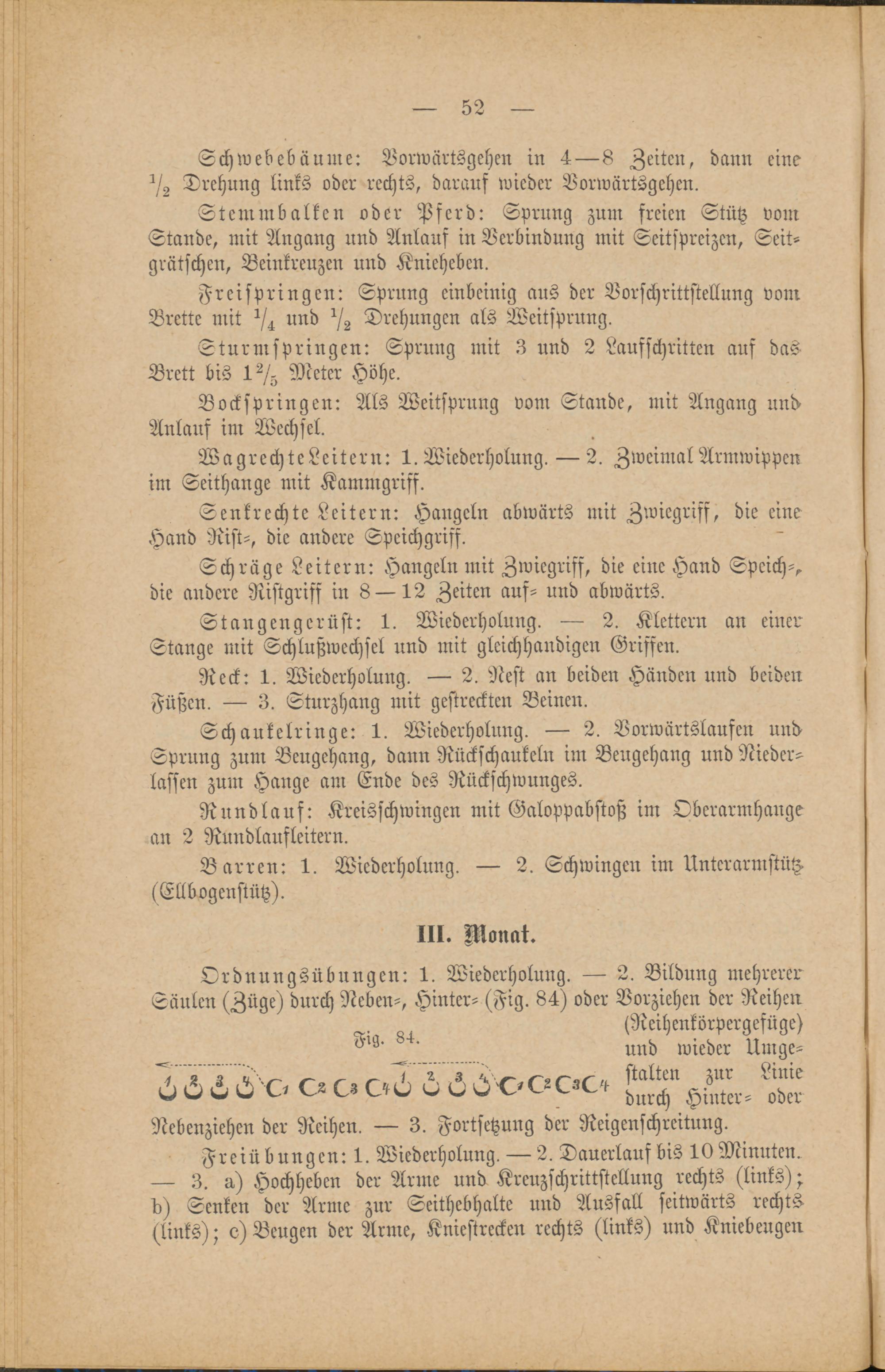 Ordnungsübungen: 1. Wiederholung. — 2. Bildung mehrererSäulen (Züge) durch Neben-, Hinter- (Fig. 84) oder Vorziehen der Reihen