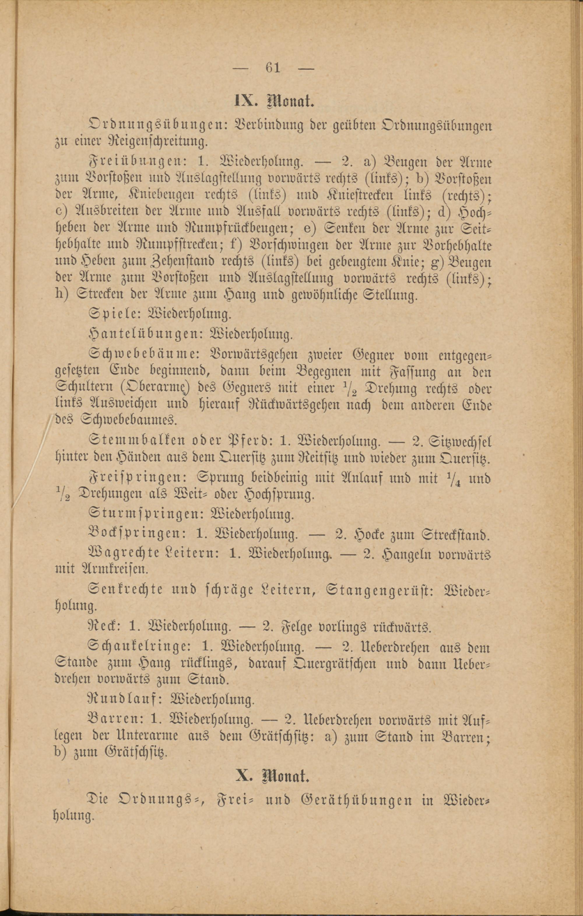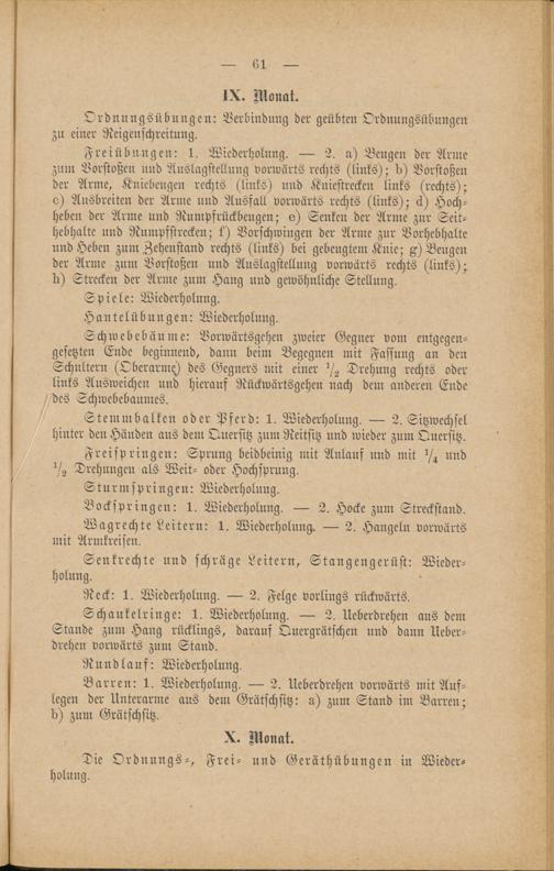 Die Ordnungs-, Frei- und Geräthübungen in Wieder-holung.