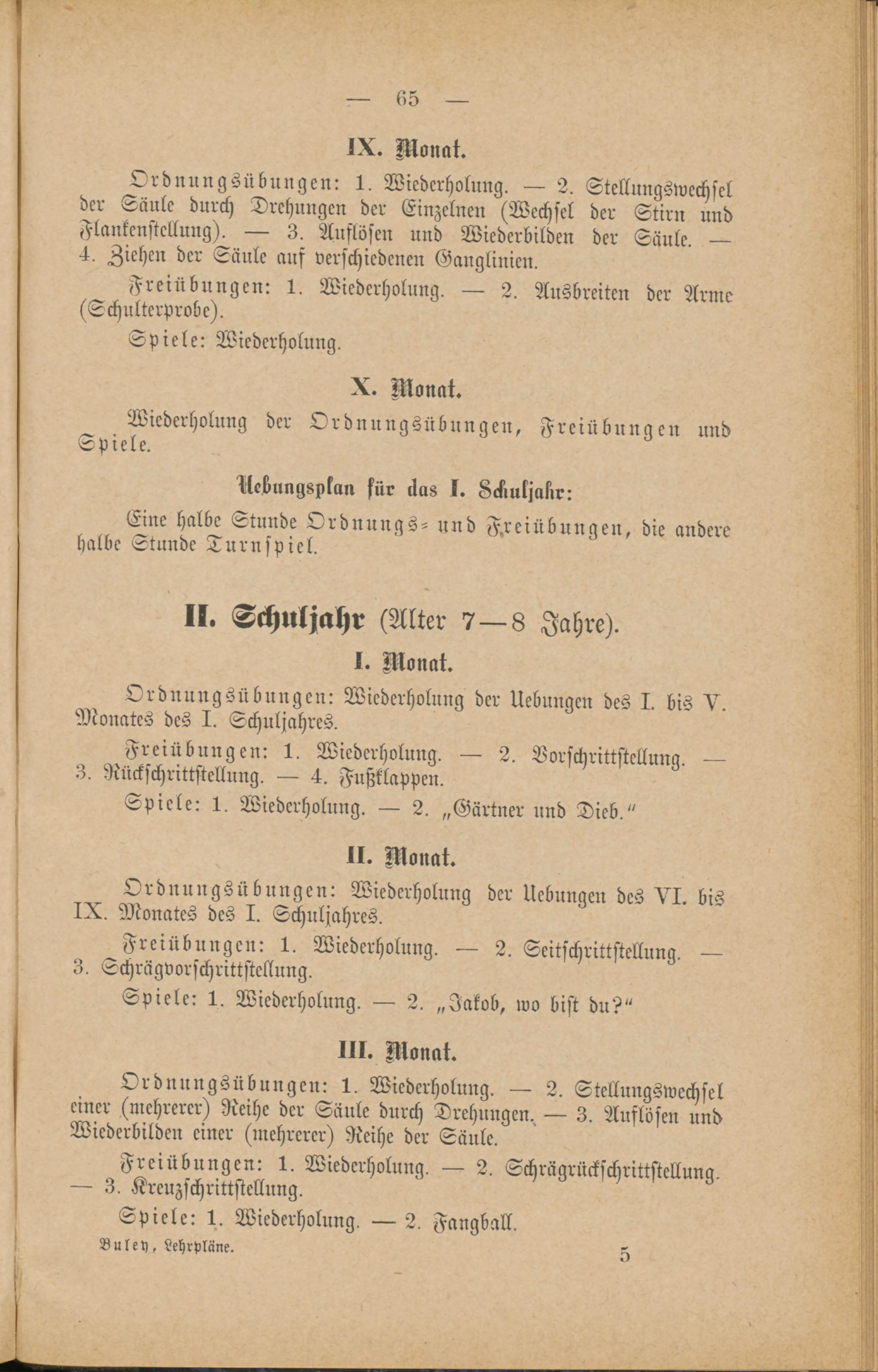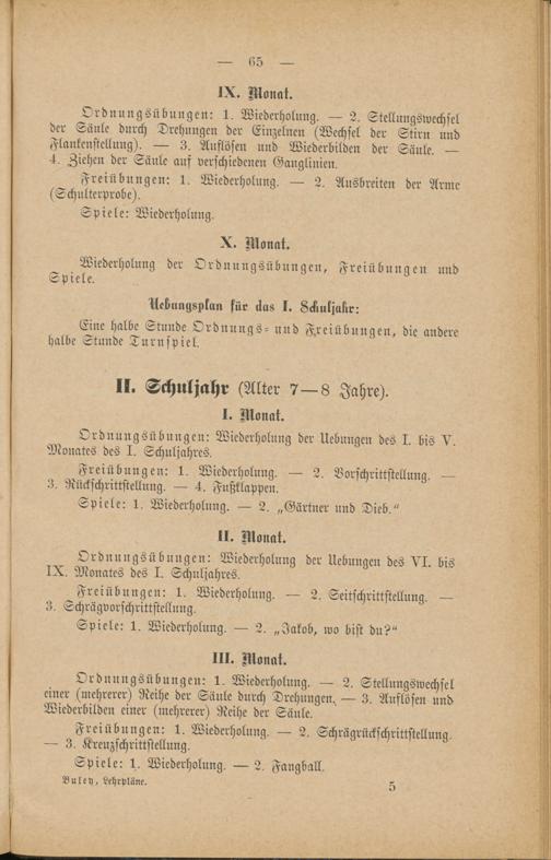 Ordnungsübungen: Wiederholung der Uebungen des I. bis V.Monates des I. Schuljahres.