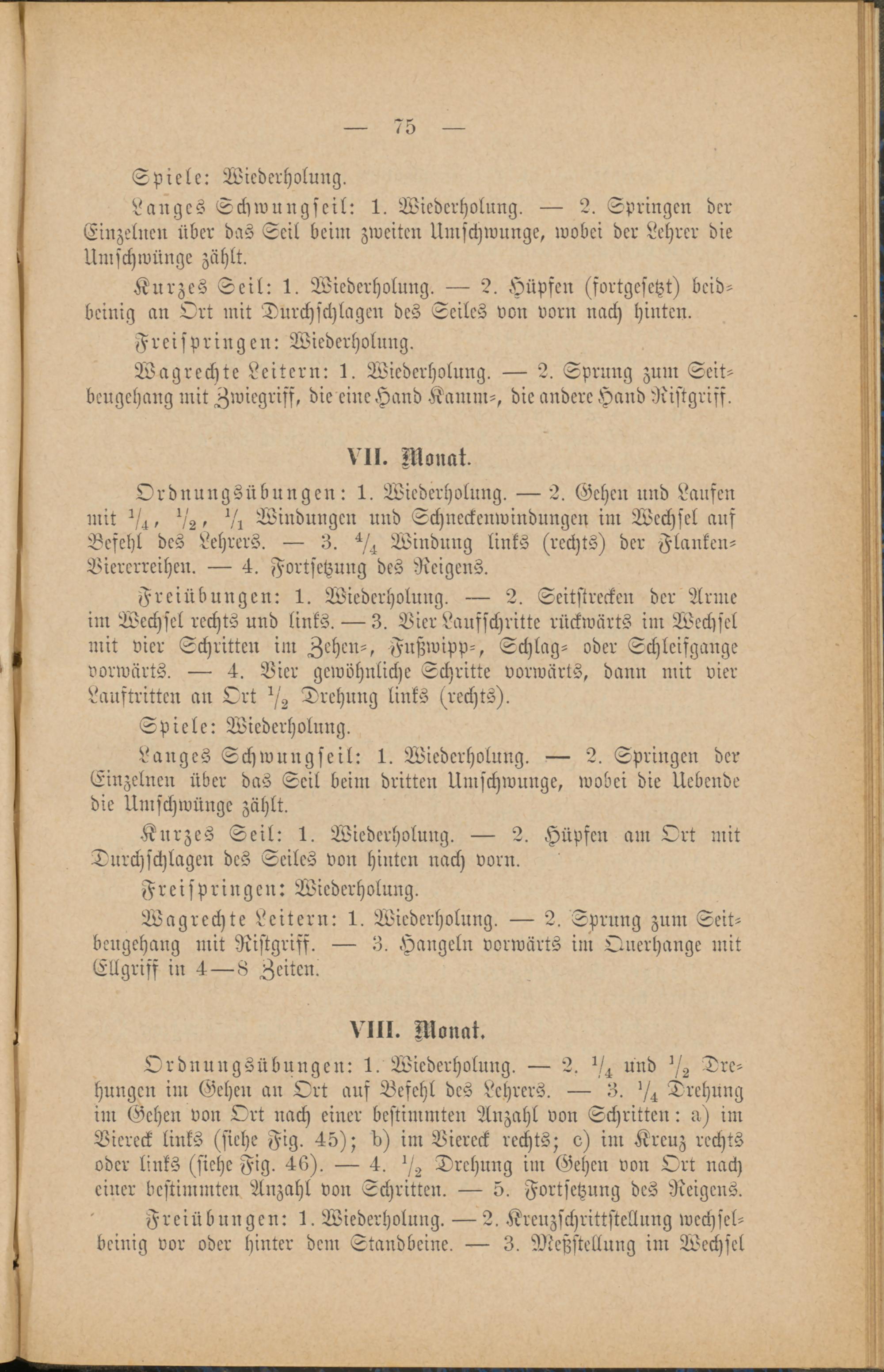 Ordnungsübungen: 1. Wiederholung. — 2. ^ und Uz Dre-hungen im Gehen an Ort auf Befehl des Lehrers. — 3. ^ Drehungim Gehen von Ort nach einer bestimmten Anzahl von Schritten: a) imBicreck links (siehe Fig. 45); d) im Viereck rechts; 0 ) im Kreuz rechtsoder links (siehe Fig. 46). — 4. Drehung im Gehen von Ort nacheiner bestimmten Anzahl von Schritten. — 5. Fortsetzung des Reigens.