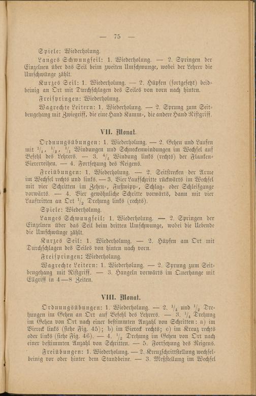 langes Schwungseil: 1. Wiederholung. — 2. Springen derEinzelnen über das Seil beim zweiten Umschwünge, wobei der Lehrer dieUmschwünge zählt.
