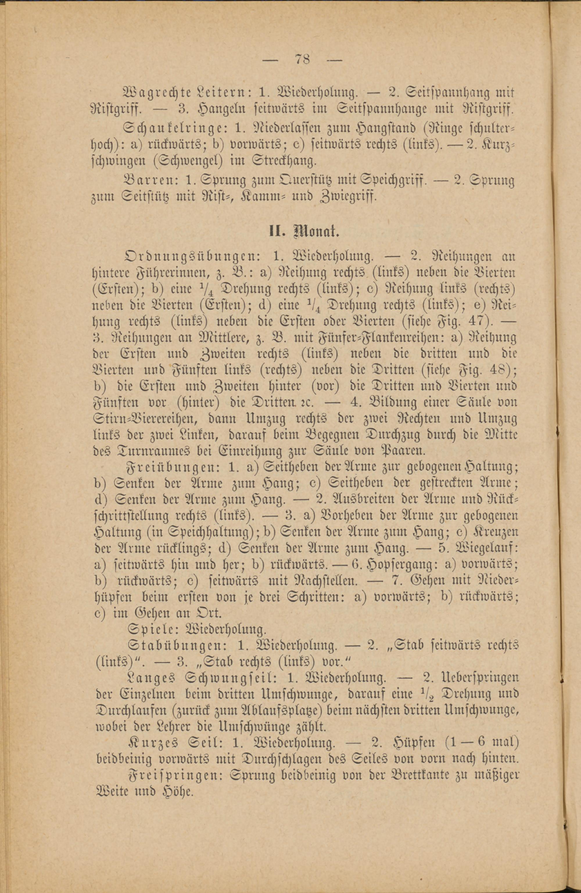 n) seitwärts hin und her; d) rückwärts. — 6. Hopsergang: a) vorwärts;d) rückwärts; o) seitwärts mit Nachstellen. — 7. Gehen mit Nieder-hüpfen beim ersten von je drei Schritten: n) vorwärts; d) rückwärts;