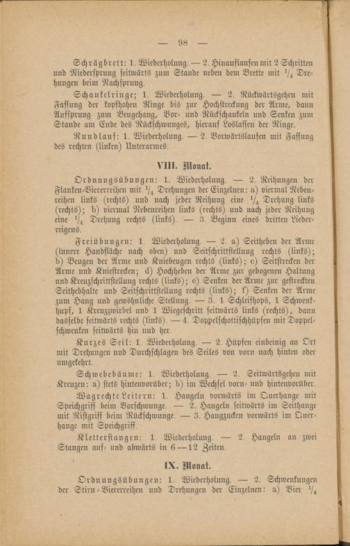 Kletterstangen: 1. Wiederholung. — 2. Hangeln an zweiStangen auf- und abwärts in 6 —12 Zeiten.