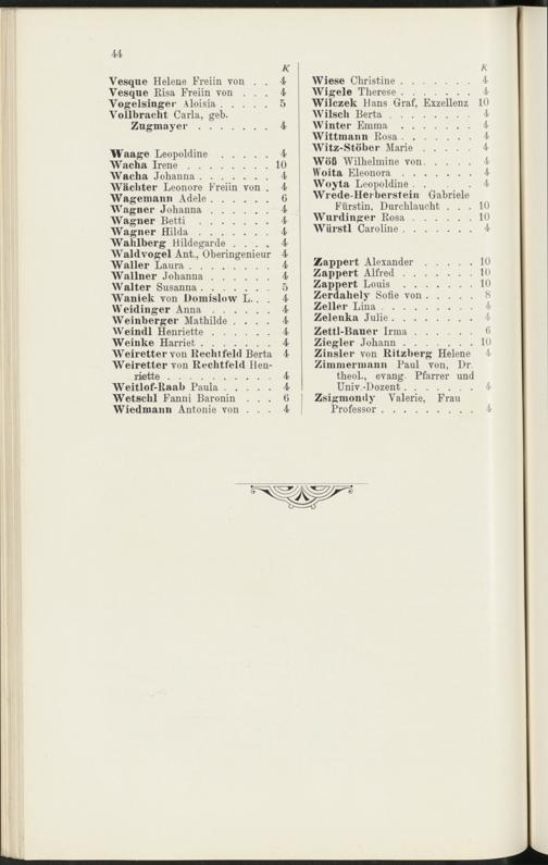 Wetschl Fanni Baronin . . .Wiedmann Antonie von . . .