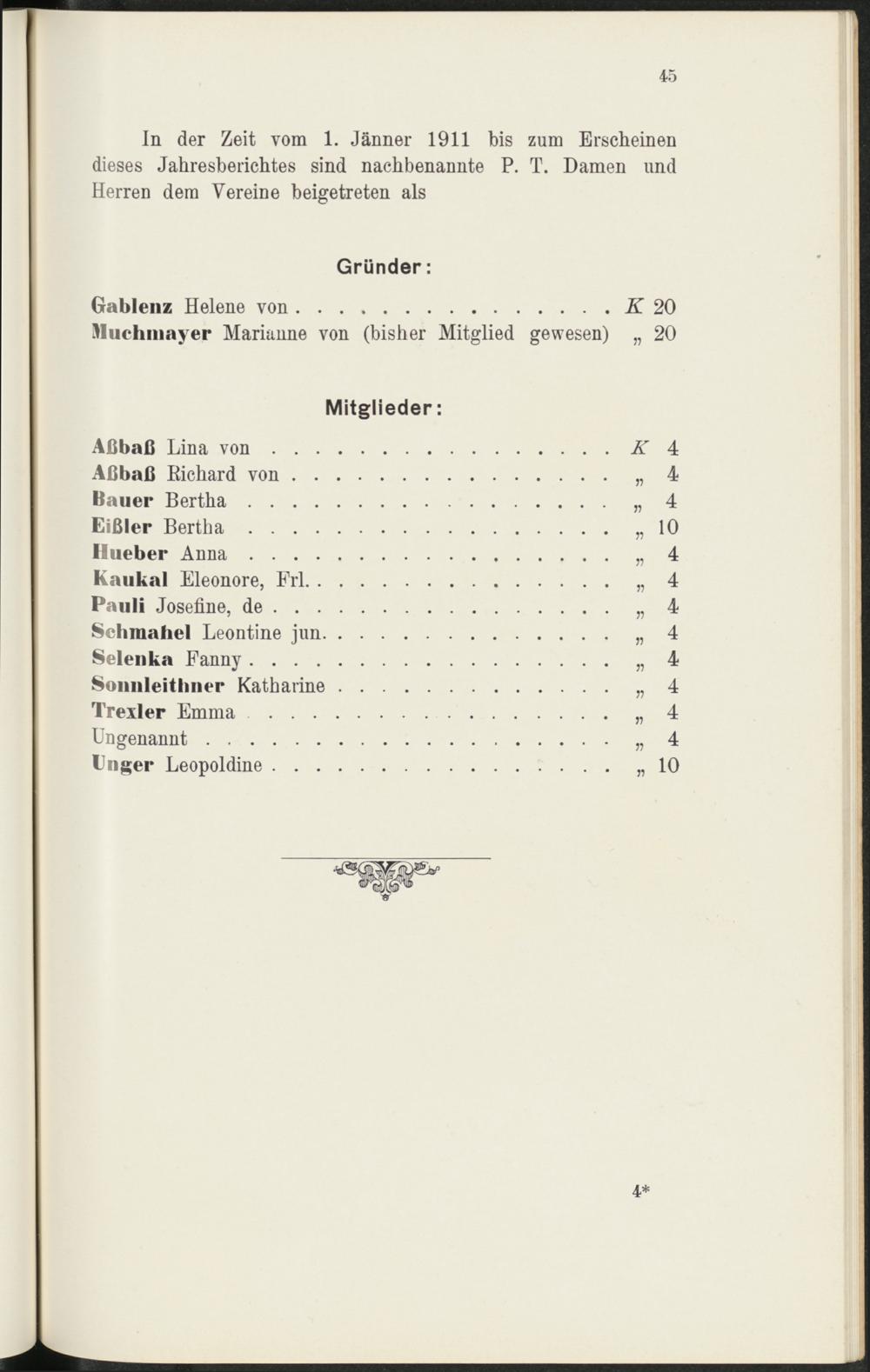 In der Zeit vom 1. Jänner 1911 bis zum Erscheinendieses Jahresberichtes sind nachbenannte P. T. Damen undHerren dem Vereine beigetreten als