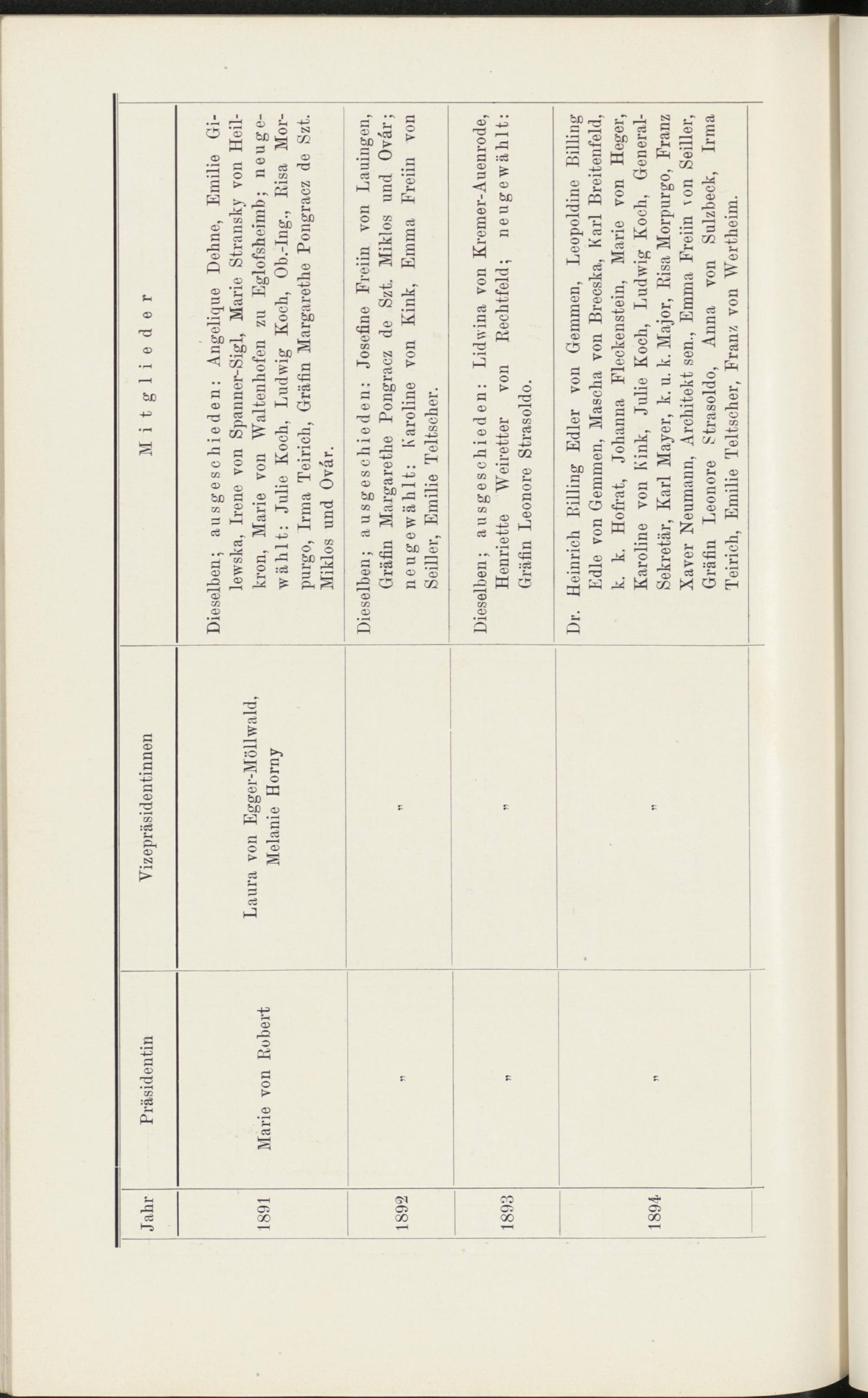 Sekretär, Karl Mayer, k. u. k. Major, Kisa Morpurgo, FranzXaver Neumann, Architekt sen., Emma Freiin \on Seiller,Gräfin Leonore Strasoldo, Anna von Sulzbeck, IrmaTeirich, Emilie Teltsclier, Franz von Wertheim.