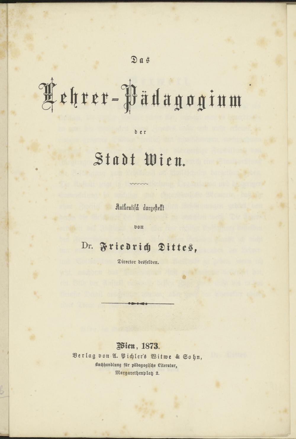 Verlag von A. Pichler'ö Witwe L Sohn,Luchhandlung für Pädagogische Literatur,Margarethenplatz 2.