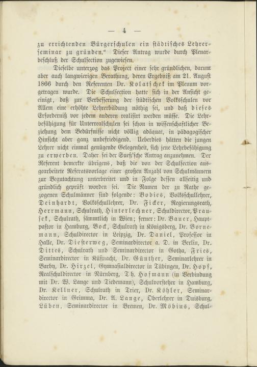 zu errichtenden Bürgerschulen ein städtisches Lehrer-seminar zu gründen." Dieser Antrag wurde durch Plenar-beschluß der Schulsection zugewiesen.