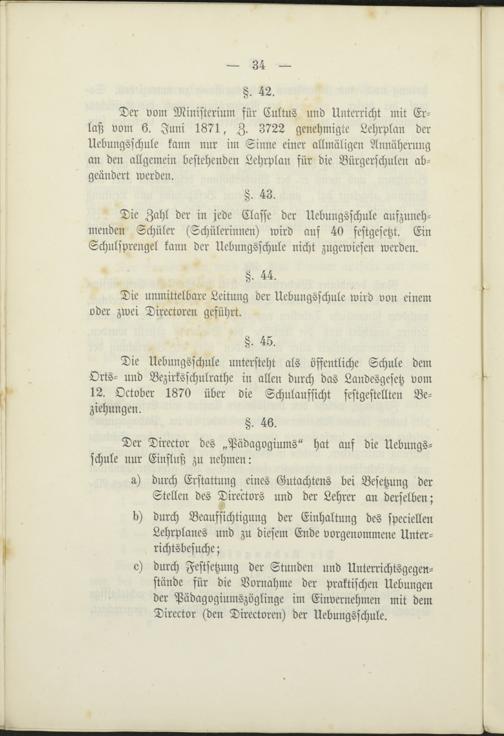 Der vom Ministerium für Cultus und Unterricht mit Er-laß vorn 6. Juni 1871, Z. 3722 genehmigte Lehrplan derUebungsschule kann nur im Sinne einer allmäligen Annäherungan den allgemein bestehenden Lehrplan für die Bürgerschulen ab-geändert werden.