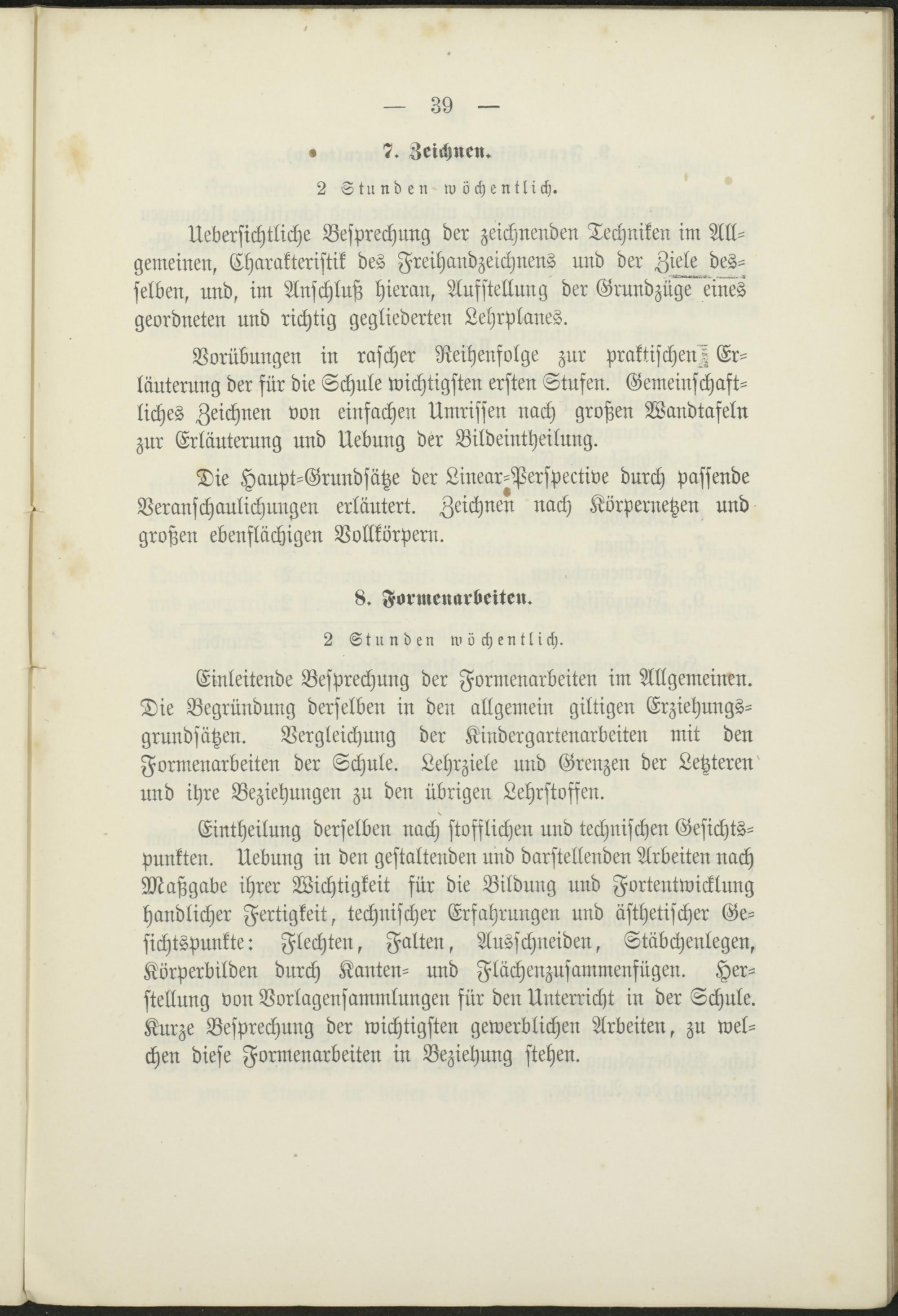 Eintheilung derselben nach stofflichen und technischen Gesichts-punkten. Uebung in den gestaltenden und darstellenden Arbeiten nachMaßgabe ihrer Wichtigkeit für die Bildung und Fortentwicklunghandlicher Fertigkeit, technischer Erfahrungen und ästhetischer Ge-sichtspunkte: Flechten, Falten, Ausschneiden, Stäbchenlegen,Kvrperbilden durch Kanten- und Flächenzusammenfügen. Her-stellung von Vorlagensammlungen für den Unterricht in der Schule.Kurze Besprechung der wichtigsten gewerblichen Arbeiten, zu wel-chen diese Formenarbeiten in Beziehung stehen.