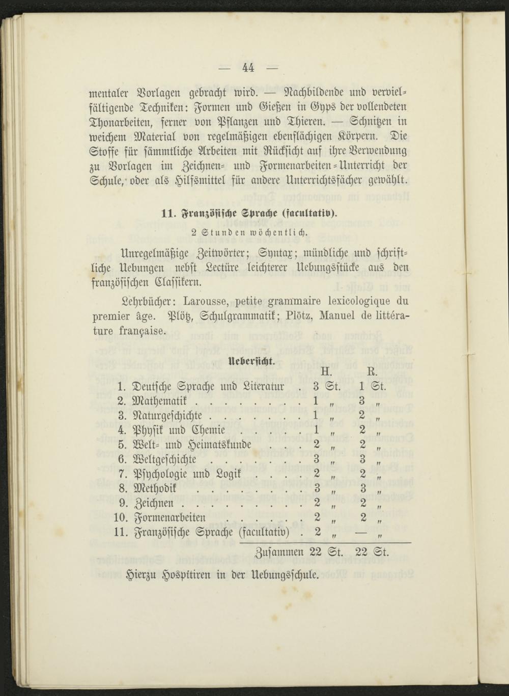 Unregelmäßige Zeitwörter; Syntax; mündliche und schrift-liche Uebungen nebst Lectüre leichterer Uebungsstücke aus denfranzösischen Classikern.