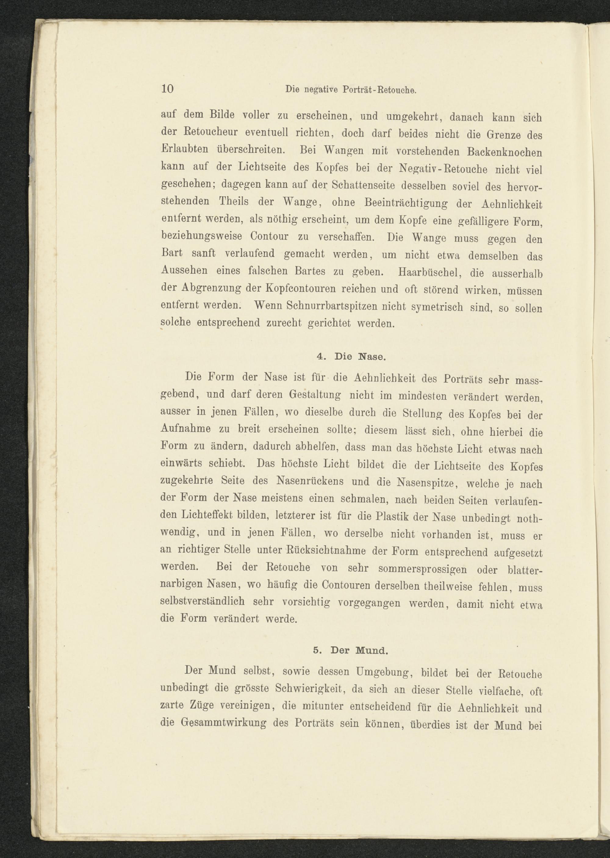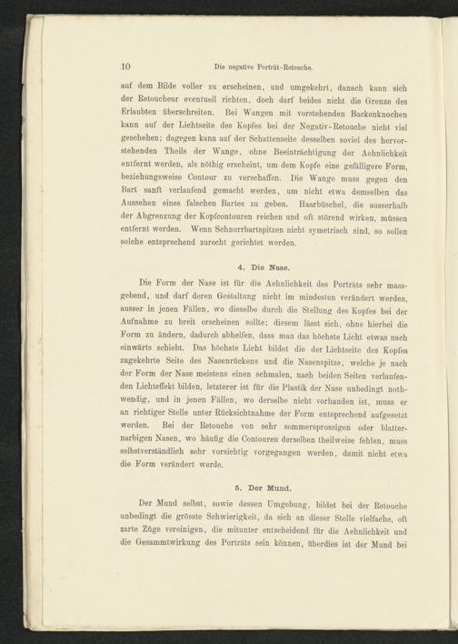 Der Mund selbst, sowie dessen Umgebung, bildet bei der Retoucheunbedingt die grösste Schwierigkeit, da sich an dieser Stelle vielfache, oftzarte Züge vereinigen, die mitunter entscheidend für die Aehnlichkeit unddie Gesammtwirkung des Porträts sein können, überdies ist der Mund bei