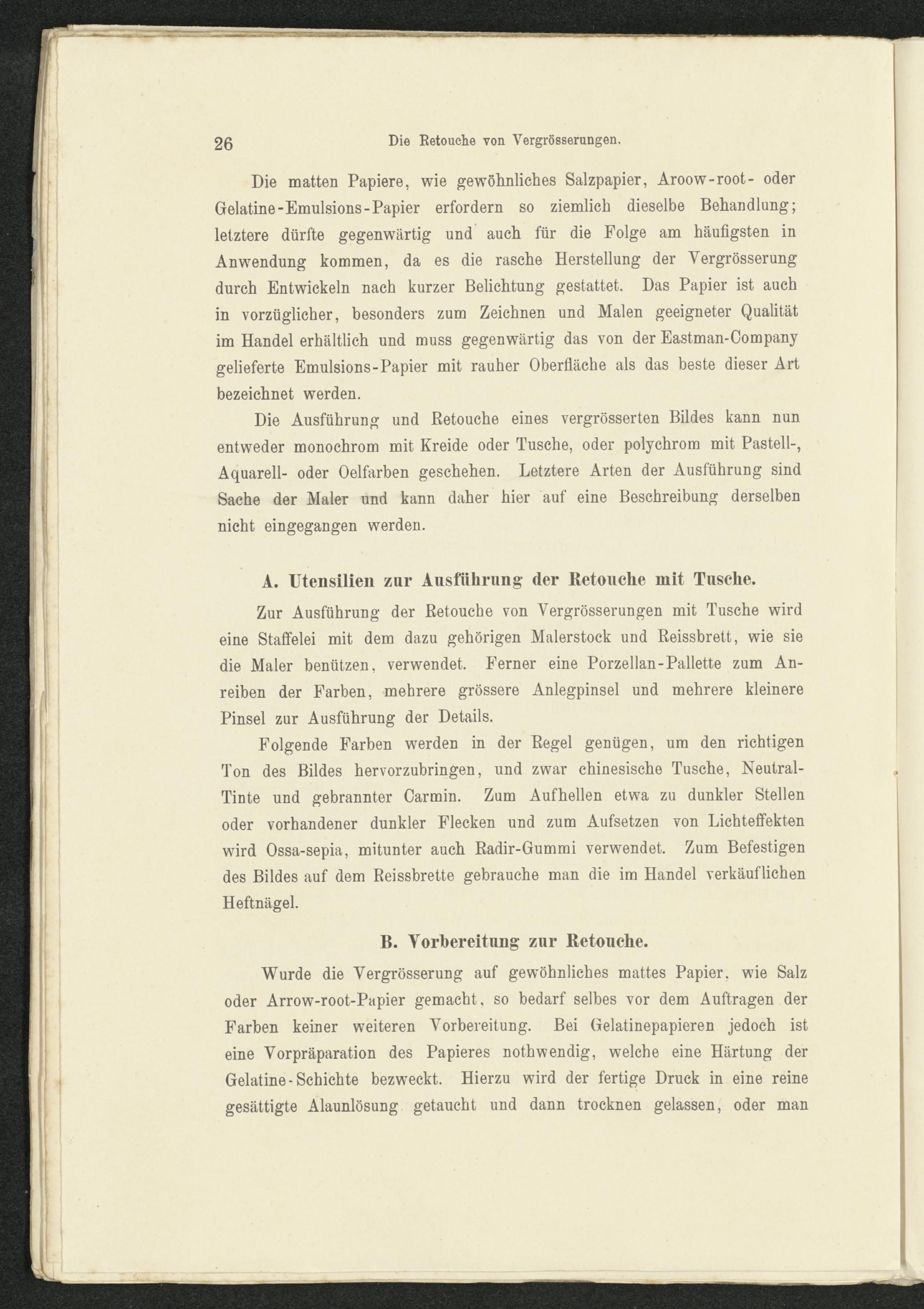 Die Ausführung und Retouche eines vergrösserten Bildes kann nunentweder monochrom mit Kreide oder Tusche, oder polychrom mit Pastell-,Aquarell- oder Oelfarben geschehen. Letztere Arten der Ausführung sindSache der Maler und kann daher hier auf eine Beschreibung derselbennicht eingegangen werden.