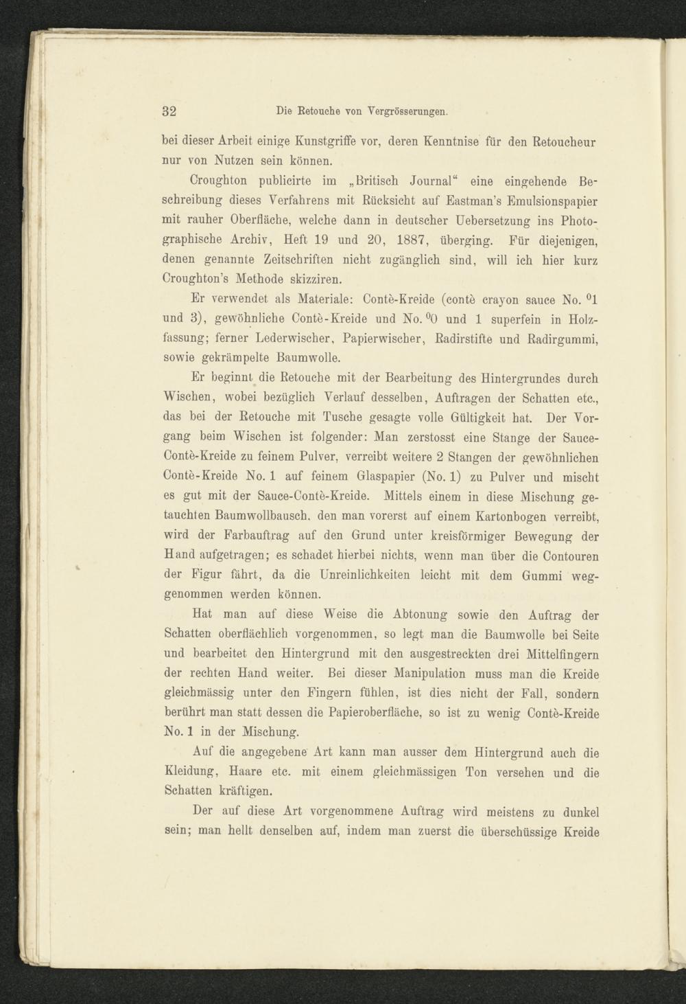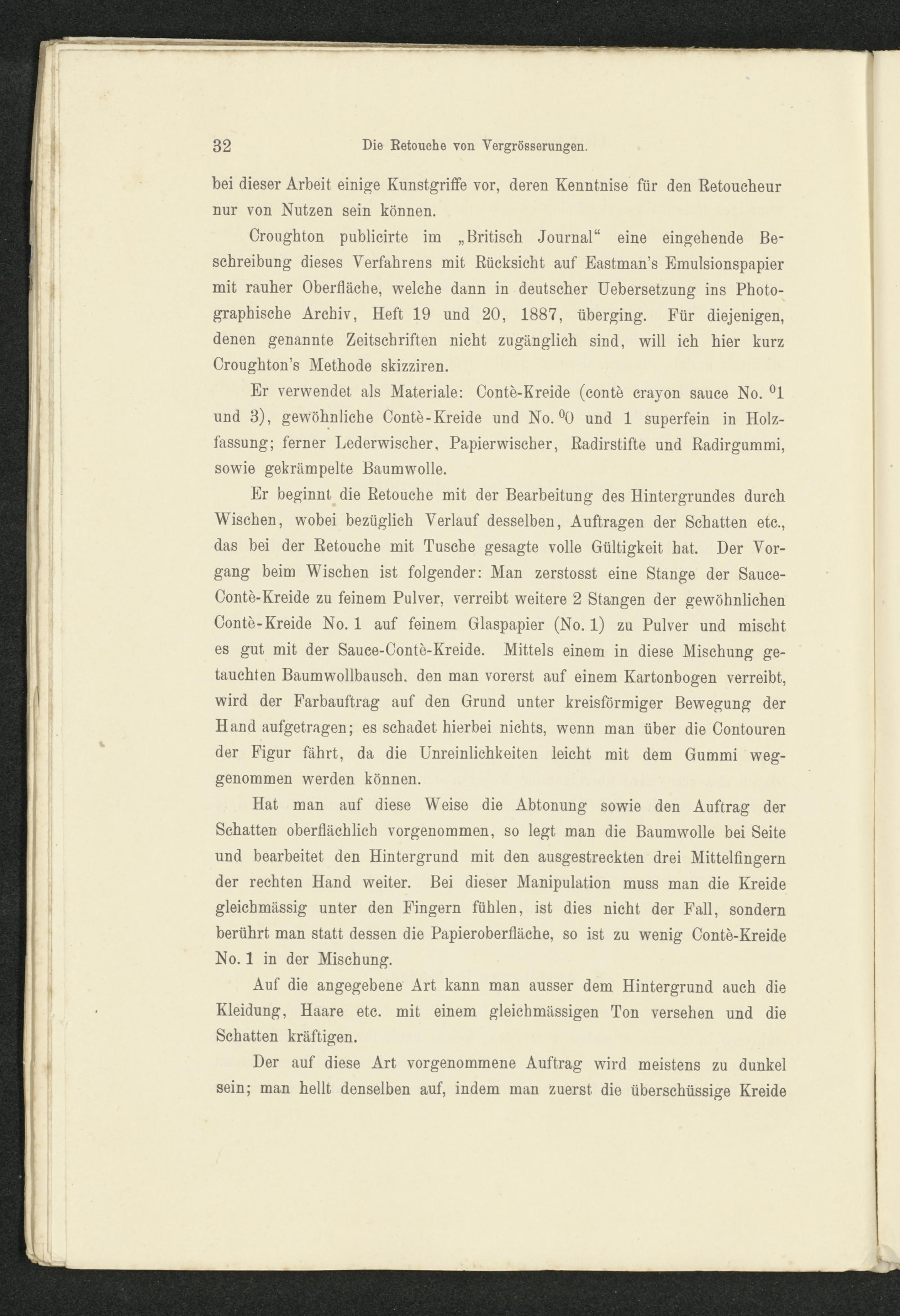 Croughton publicirte im „Britisch Journal“ eine eingehende Be-schreibung dieses Verfahrens mit Rücksicht auf Eastman’s Emulsionspapiermit rauher Oberfläche, welche dann in deutscher Uebersetzung ins Photo-graphische Archiv, Heft 19 und 20, 1887, überging. Für diejenigen,denen genannte Zeitschriften nicht zugänglich sind, will ich hier kurzCroughton’s Methode skizziren.
