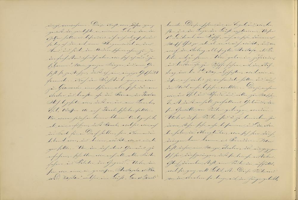 kannte. - Dieser schien uns ein Engel und wie lie-ßen uns die Lage der Bucht expliciren. Unser1te Lieutnant vom Schiff, auch ein sehr dummerMensch that so als ob er es auch wüßte, und ver-warf den Antrag obbesagten Mustafa als Pi-loten mitzunehmen. - Wir gaben uns zufrieden,und ließen ihn zum Schiffe fahren mit den Auf-trag uns bis 8ten May abzuhohlen, weil wir in-dessen noch vieles zu verhandeln hatten und auchdie Stadt mehr besehen wollten. - Dazu nahmenwir uns Esel und Pferde und ritten zur Moschee . -Es ist dieß ein halb zerfallenes Gebäude, des-sen Gewölbe von Säulen getragen werden. -Unter diesen Säulen sind 3. zu bemerken. Zweidavon stehen sehr nahe beisammen und die Ara-ber haben den Aberglauben , wer sich hier durch-drängen kann komme ins Paradies - Mansieht daher eine Menge Araber, die ausgezogensich hier durchzwängen, daß sie beinahe ersticken.Gleich darneben steht eine Säule die auffällt,weil sie ganz voll Blut ist. - Diese Säule wirdvon den Arabern so lange mit der Zunge geleckt,