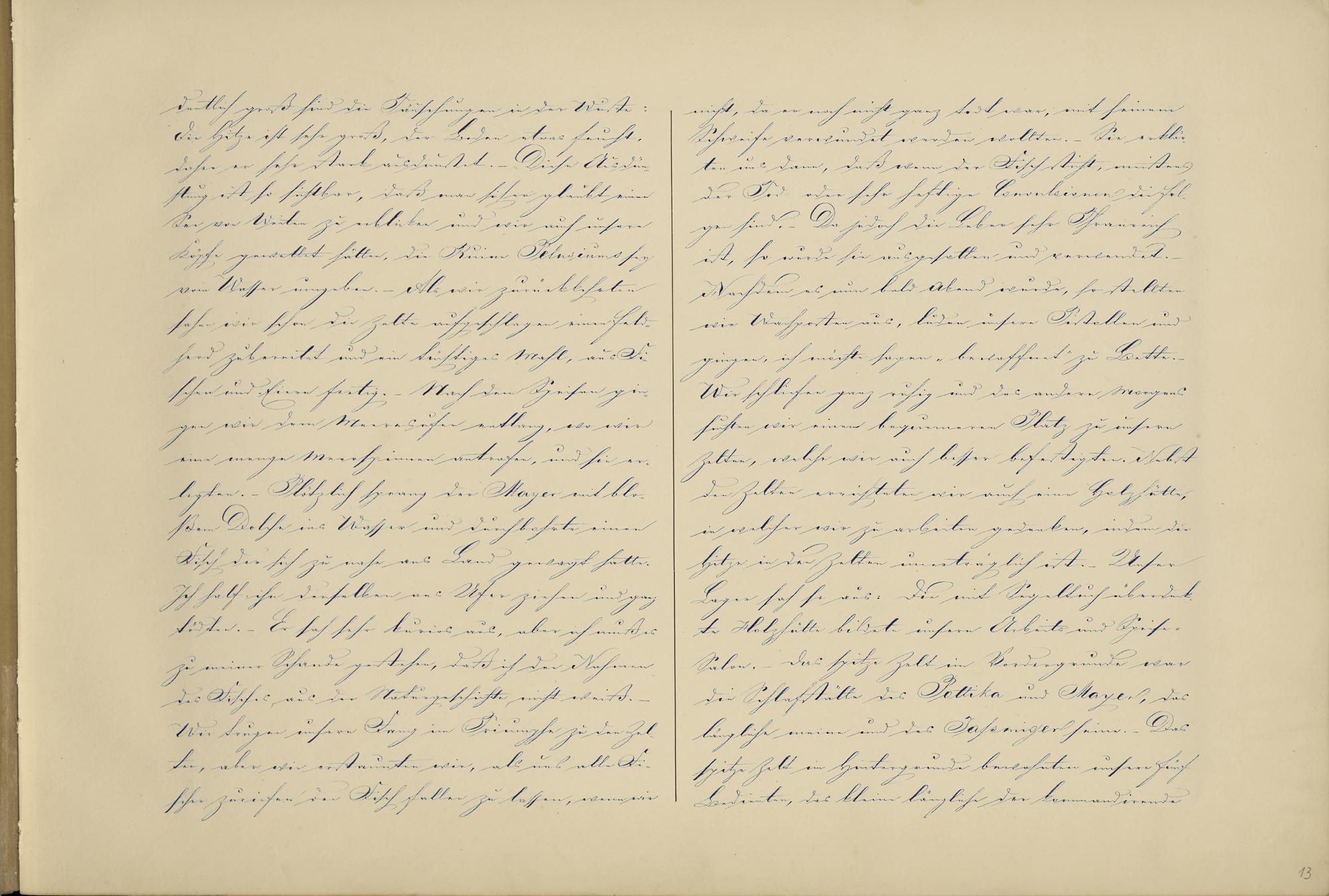 nicht, da er noch nicht ganz todt war, mit seinemSchweife verwundet werden wollten3 . - Sie erklär-ten uns dann, daß wenn der Fisch sticht, meistensder Tod oder sehr heftige Convulsionen die Fol-gen sind. - Da jedoch die Leber sehr Thranreichist, so wurde sie ausgesotten und verwendet.Nachdem es nun bald Abend wurde, so stelltenwir Wachposten aus, luden unsere Pistollen undgingen, ich möchte sagen "bewaffnet" zu Bette. -Wir schliefen ganz ruhig und des andern Morgenssuchten wir einen bequemeren Platz zu unsernZelten, welche wir auch besser befestigten. Nebstden Zelten errichteten wir auch eine Holzhütte,in welcher wir zu arbeiten gedenken, indem dieHitze in den Zelten unerträglich ist. - UnserLager sah so aus : Die mit Segeltuch überdeck-te Holzhütte bildete unsern Arbeits und Speise-Salon. - Das spitze Zelt im Vordergründe wardie Schlafstätte des und Mayer, daslängliche meine und des seine.- Dasspitze Zelt im Hintergrunde bewohnten unsere fünfBedienten, das kleine längliche der kommandirende