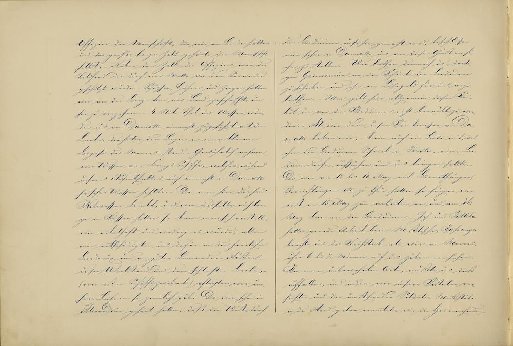 die Beduinen Glossar ::: zum Glossareintrag  Beduinen unsicher gemacht wird1, beschlossenwir schon in Damiatte uns vor diesen Gästen si-cher zu stellen.- Wir bathen demnach den dorti-gen Gouverneur an den Scheick der Beduinenzu schicken und ihn ein Lösegeld für uns anzu-biethen.- Man gibt hier allgemein diesen Tri-but um von den Beduinen nicht beraubt zu wer-den. Als wir dann unser Trinkwasser von Da-miatte bekammen,- kam auch ein Bote mit, wel-cher den Beduinen Scheick in Zuatić, einem Be-duinendorfe, aufsuchen und uns bringen sollte.Da wir von 12 bis 14. May mit Berathungen,Vorrichtungen etc zu thun hatten so fingen wirerst am 15 May zum arbeiten an und am 1k.May kammen die Beduinen.- Ich und Pottika hatten gerade Arbeit beim Messtische, Jassmiger brachte uns das Frühstück als wir am Meeres-ufer 6. bis 7. Männer auf uns zukommen sahen.In einem unbewohnten Orte, mußte uns dießauffallen, und indem wir unsere Pistolen ver-suchten und den umstehenden Soldaten Maßstäbein die Hand gaben erwarteten wir die Herannahenden