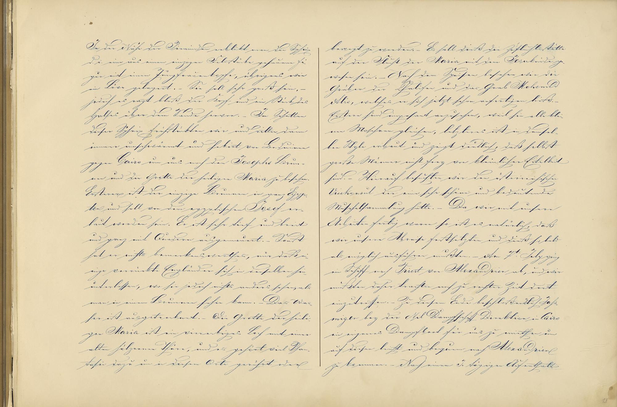 bewegt zu werden.- Es soll dieß die Zufluchtstätteauf der Flucht der Maria mit dem Jesukinde ge-wesen sein.- Nach dem Speisen besahen wir dieGräber der Chalifen und das Grab MehemedAlis , welches er sich jetzt schon anfertigen ließ.-Erstere sind imposant anzusehen, weil sie alle klei-nen Moscheen gleichen, letzteres ist in demsel-ben Style erbaut und zeigt deutlich, daß selbstgroße Männer nicht frey von kleinlicher Eitelkeitsind.- Hierauf besuchten wir den österreichischenVicekonsul der eine sehr schöne und bedeutendeMuschelsammlung2 hatte.- Da wir mit unserenArbeiten fertig waren so ist es natürlich, daßwir unsere Abreise festsetzten und dieß so baldals möglich ausführen mußten.- Am 7t. July gingein Schiff nach Triest von Alexandrien ab, und wirmußten daher trachten noch zu rechter Zeit dorteinzutreffen.- Zu diesem Ende beschloß endlich Jahs-miger bey der Nil Dampfschiff Direktion in Cairoein eigenes Dampfboot für uns zu miethen umauf diesem leicht und bequem nach Alexandrienzu kommen.- Nach einem 3. tägigen Aufenthalte
