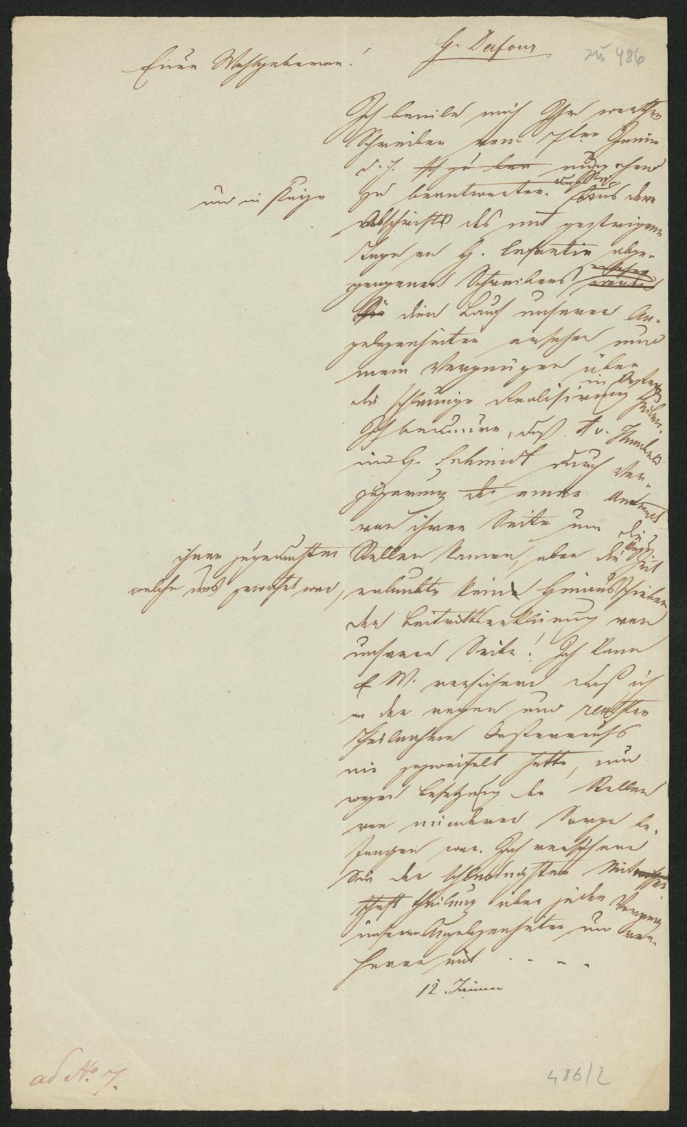 und H. Schmidt durch Ver-zögerung der eine [unleserlich]von ihrer Seite um dieihnen zugedachten Stellen kamen, aber die Zeitwelche uns gewahrt wird, erlaubte kein hinaus schiebender Beitrittserklärung vonunserer Seite! Ich kannE. M. versichern, daß ichan der regen und [raschen]Theilnahme Oestereichs