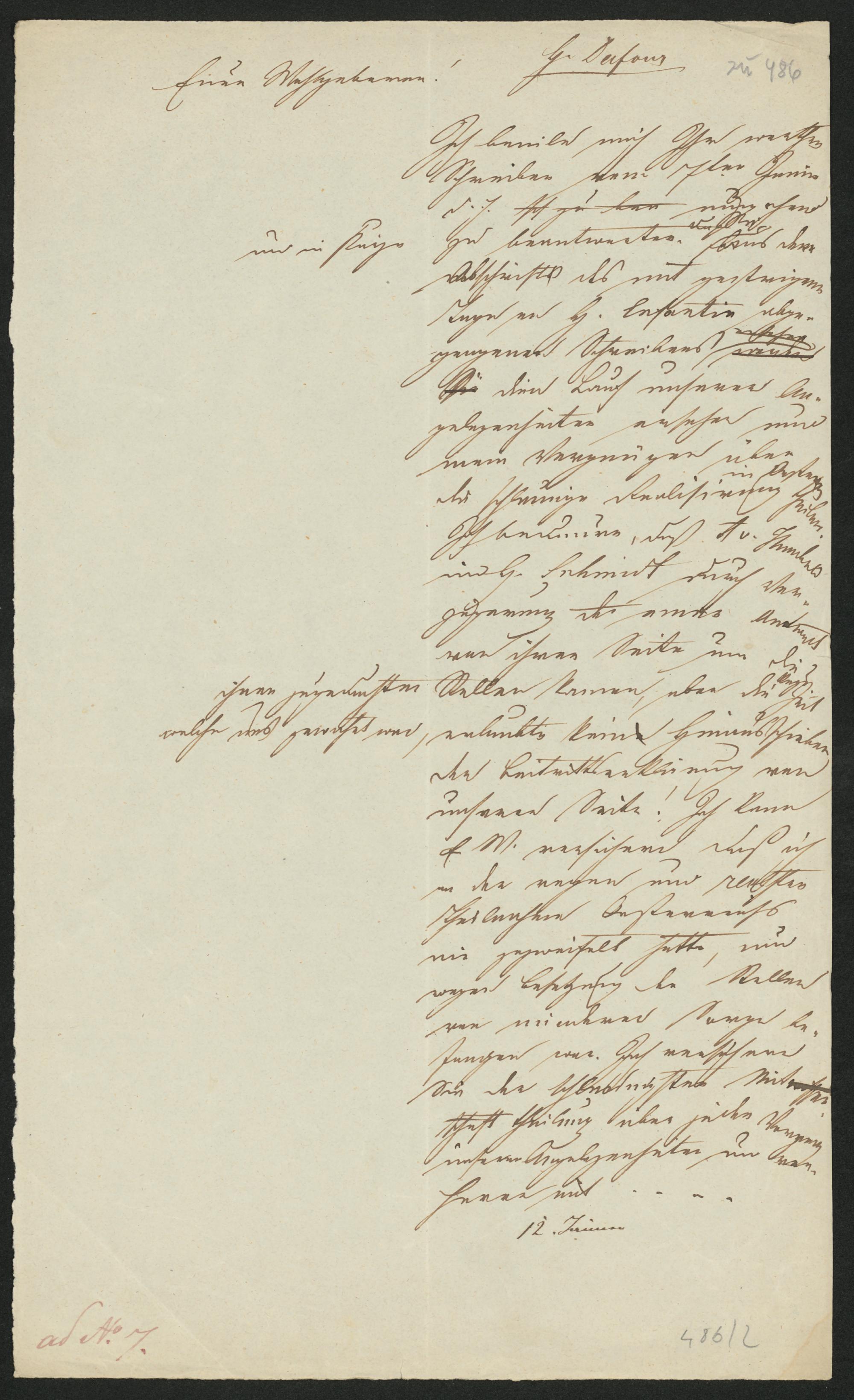 nie gezweifelt hatte, undwegen Besetzung der Stellenvon minderer Sorge be-fangen war. Ich [versichere]Sie der bedingten Mit-theilung über jeden Vorgangunser Angelegenheiten [und] ver¬harre mit...12. Jänner