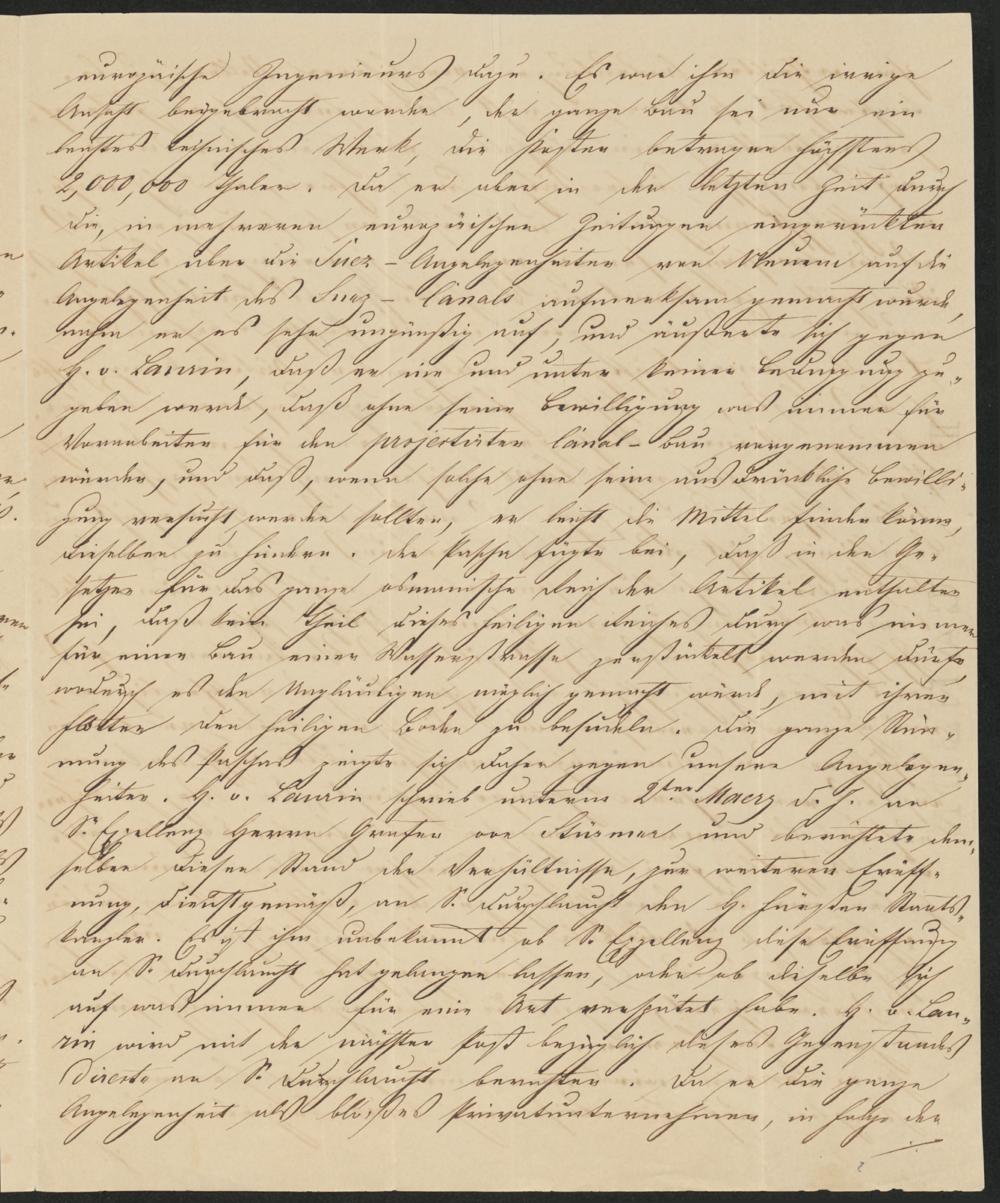 Vorarbeiter für den projectirten Canal-Bau vorgenommenwürden, und daß, wenn solche ohne seine ausdrückliche Bewilli-gung versucht werden sollten, er leicht die Mittel finden könne,dieselben zu hindern. Der Pascha fügte bei, daß in den Ge-setzen für das ganze osmanische Reich der Artikel enthaltensei, daß kein Theil dieses heiligen Reiches durch was immerfür einen Bau einer Wasserstrasse zerstückelt werden dürfe,wodurch es den Ungläubigen möglich gemacht würde, mit ihrenFlotten den heiligen Boden zu besuchen.1 Die ganze Stim-mung des Paschas zeigte sich daher gegen unsere Angelegen-heiten. H. v. Laurin schrieb unterm 2ten Maerz d. J. anS. Exellenz Herrn Grafen von Stürmer und berichtete dem-