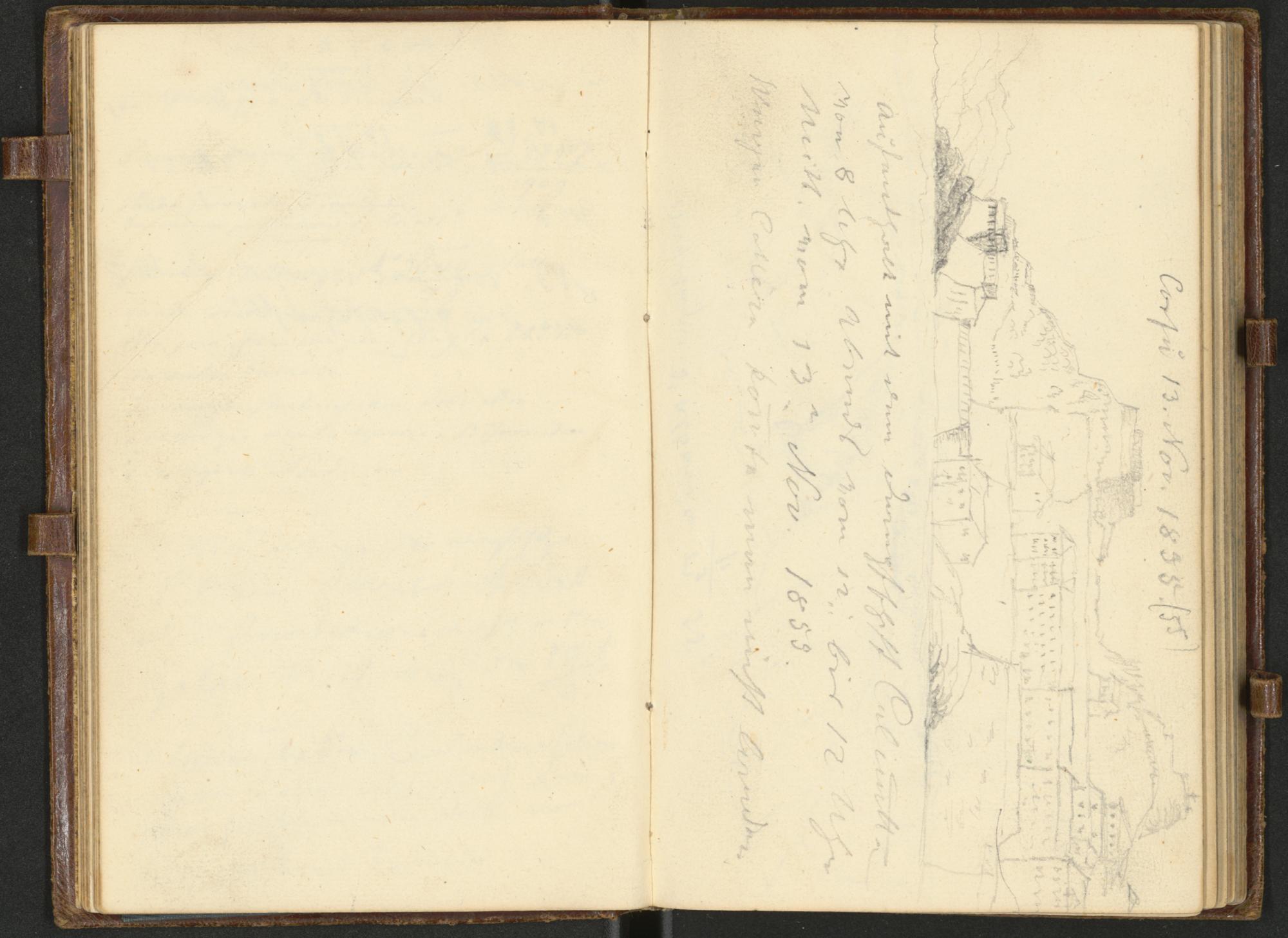 Aufenthalt mit dem Dampfschiff Calcuttavon 8 Uhr Abends vom 12. bis 12 UhrMitt. vom 13. Nov. 1855Wegen Collera1 konnte man nicht landen