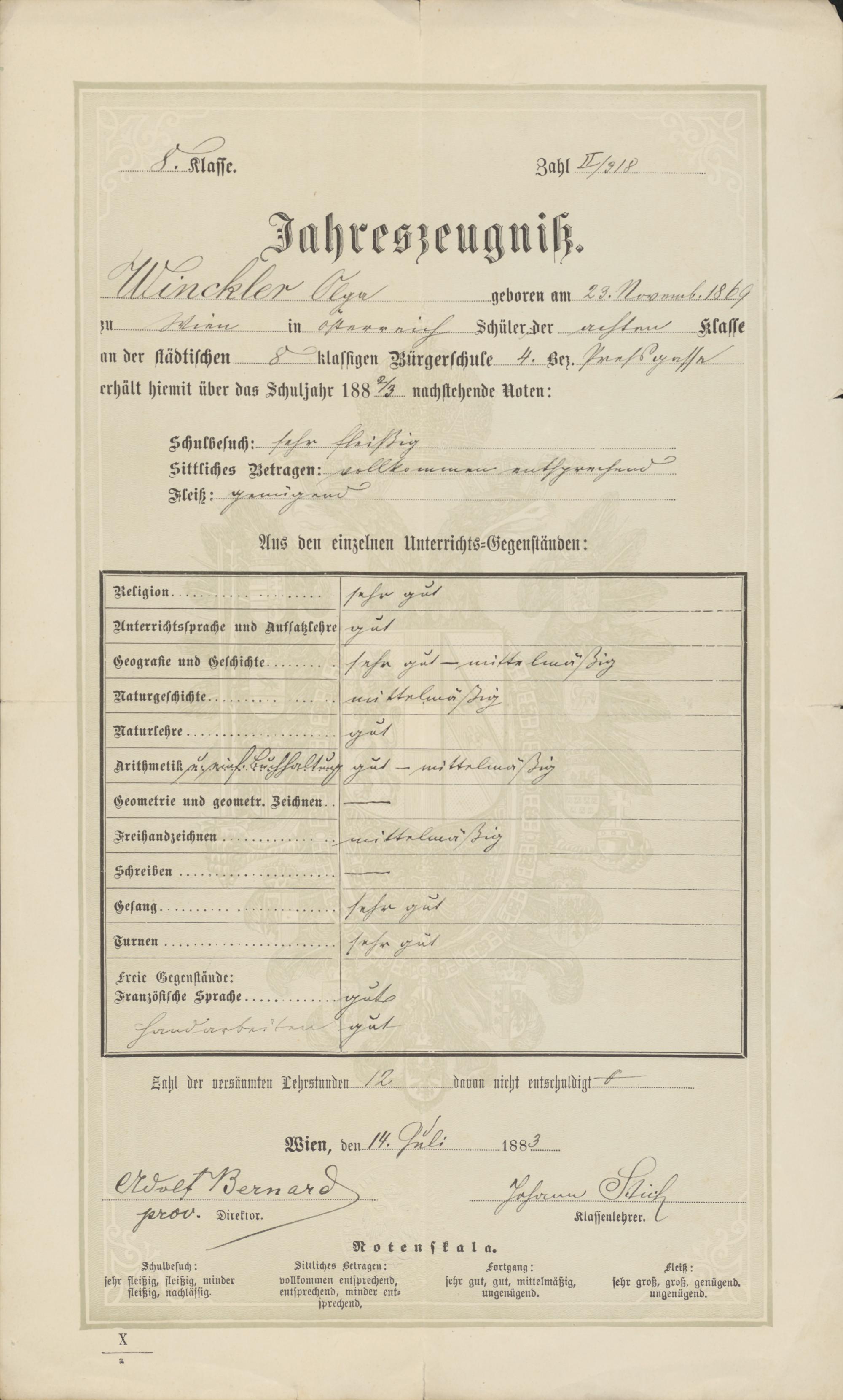 BPA-017177-03: Zeugnisse Winkler Fanni/Fanny