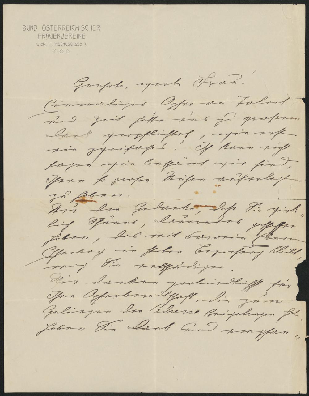 BPA-017168: Zwei Briefe von Marianne Hainisch und 1 Exemplar von "Der Bund. Zentralblatt des Bundes österr. Frauenvereine"