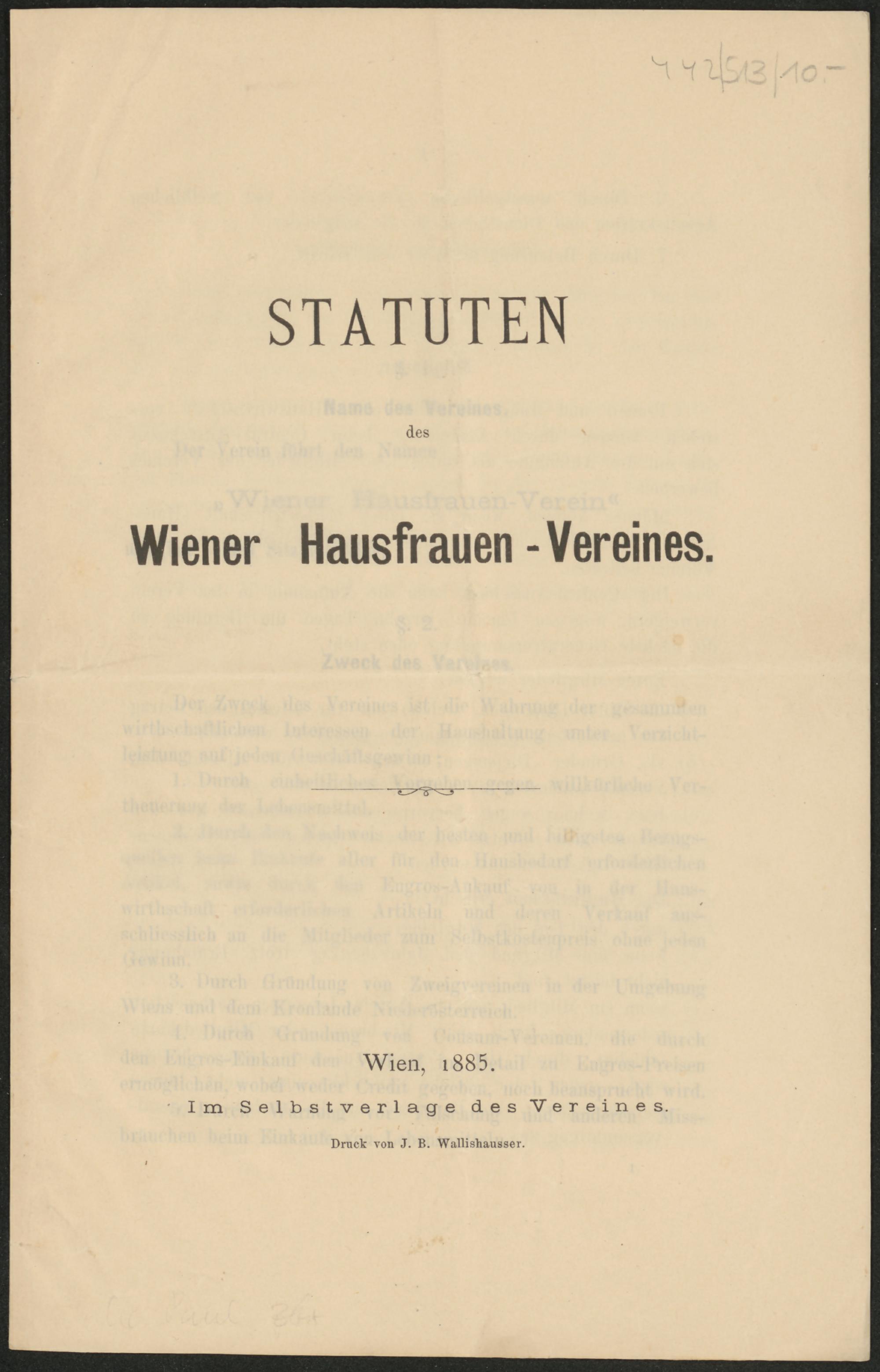 BPA-017293: Statuten des Wiener Hausfrauen-Vereines