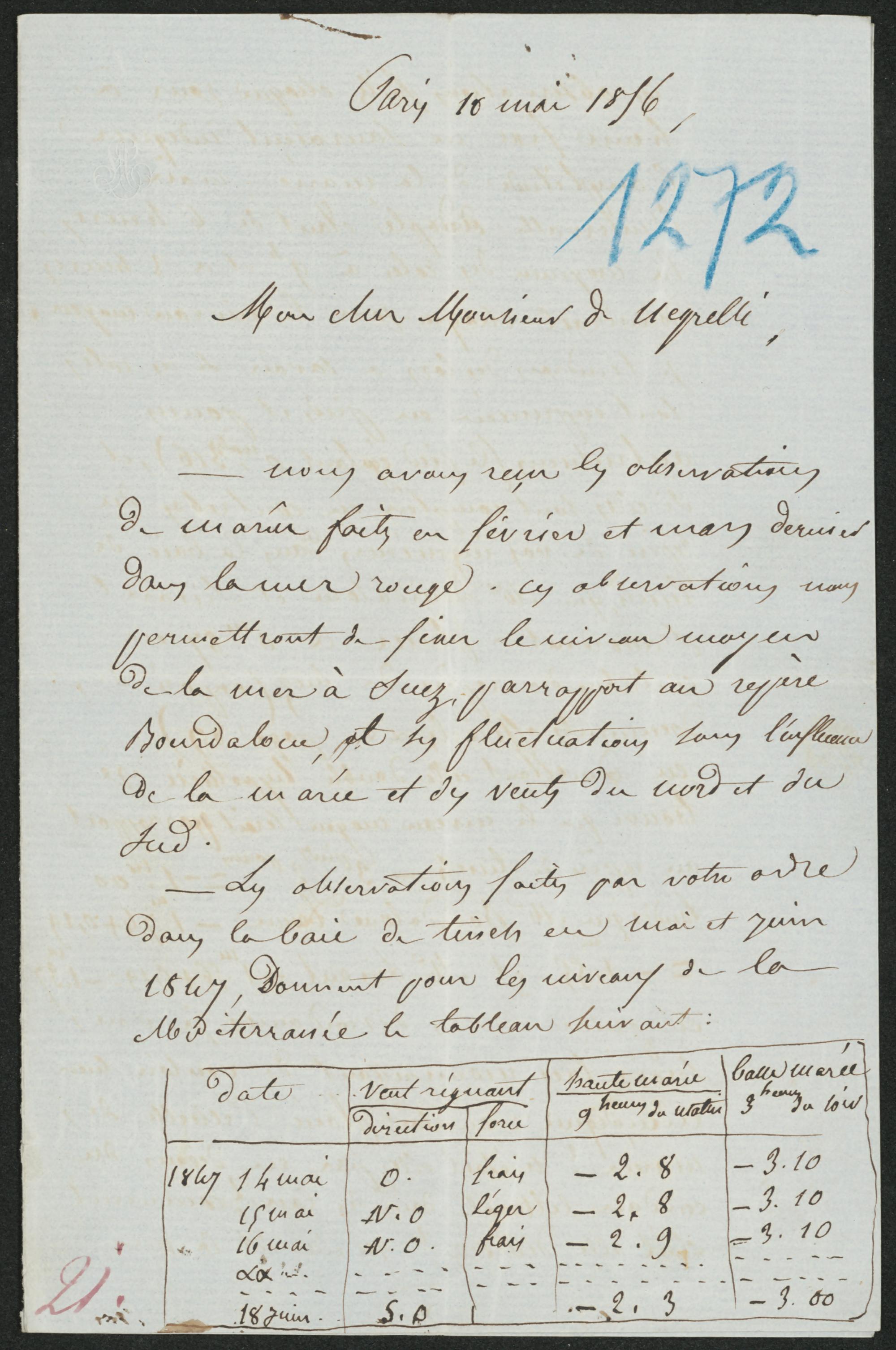 Briefe bzgl. Vermessungen der Bucht von Tineh