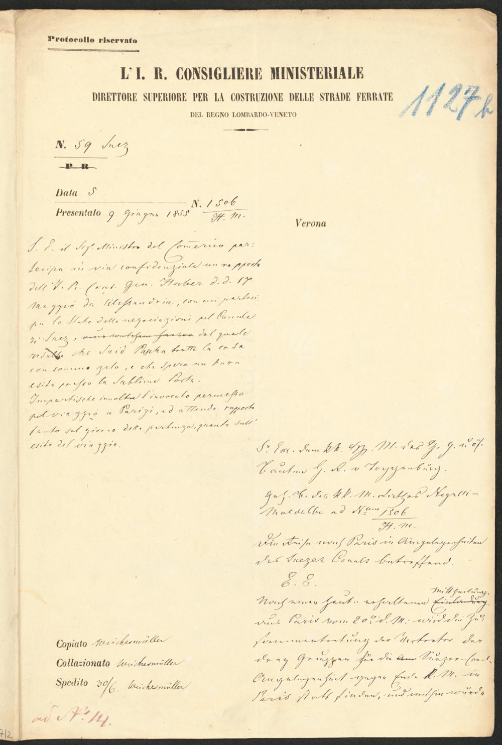 NL-050-1127: Brief bzgl. des Suezkanalprojekts & Zusendung eines Berichtes