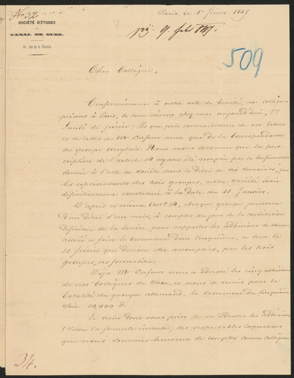 NL-050-0509-01: Brief bzgl. der Gruppen der Société