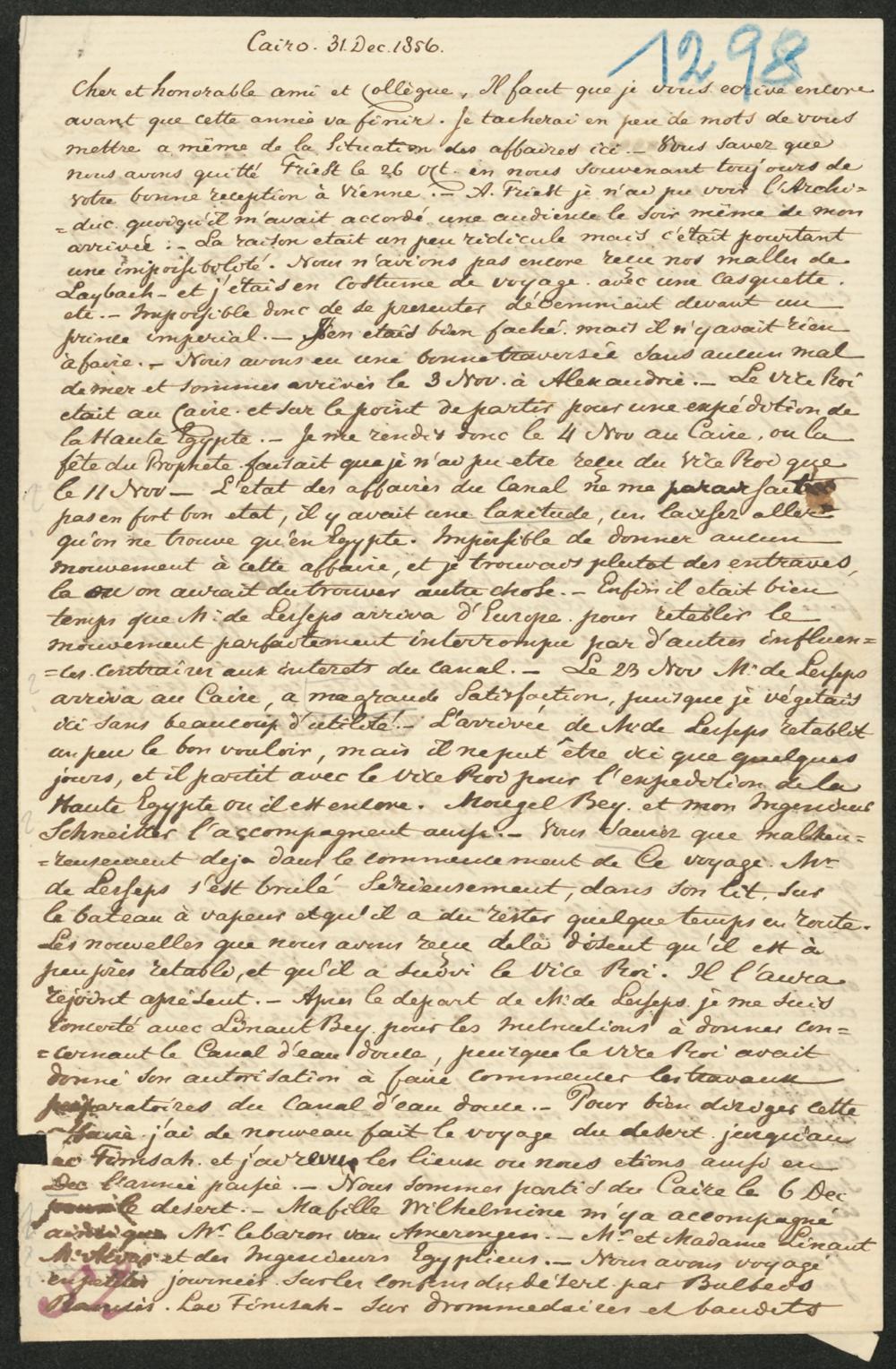 NL-050-1298: Brief bzgl. Vorarbeiten für Süßwasserkanal durch den Vizekönig