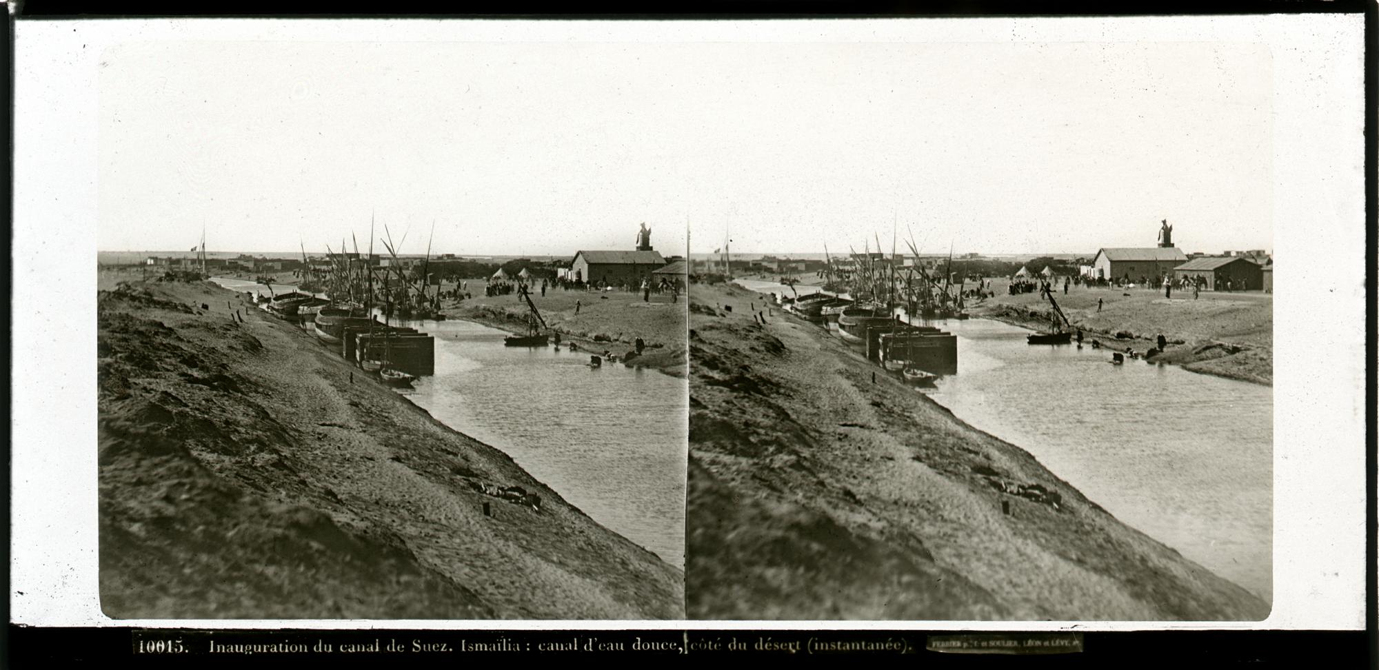 Einweihung des Suezkanals, Ismailia: der Süßwasserkanal, Momentaufnahme von der Wüstenseite