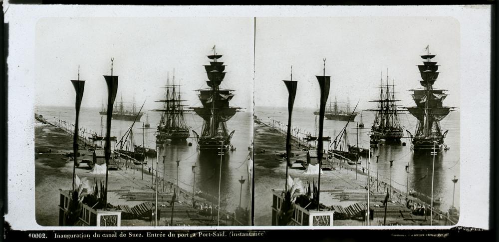 SD-01-3809: Einweihung des Suezkanals, Momentaufnahme der Einfahrt der Schiffe in Port-Said