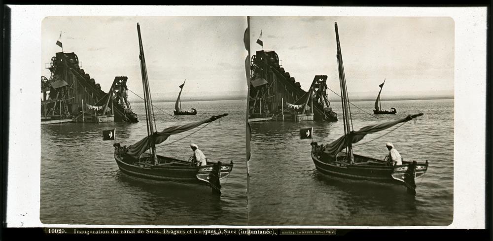 SD-01-3811: Einweihung des Suezkanals, Momentaufnahme der Bagger und Boote (Feluken) in Suez