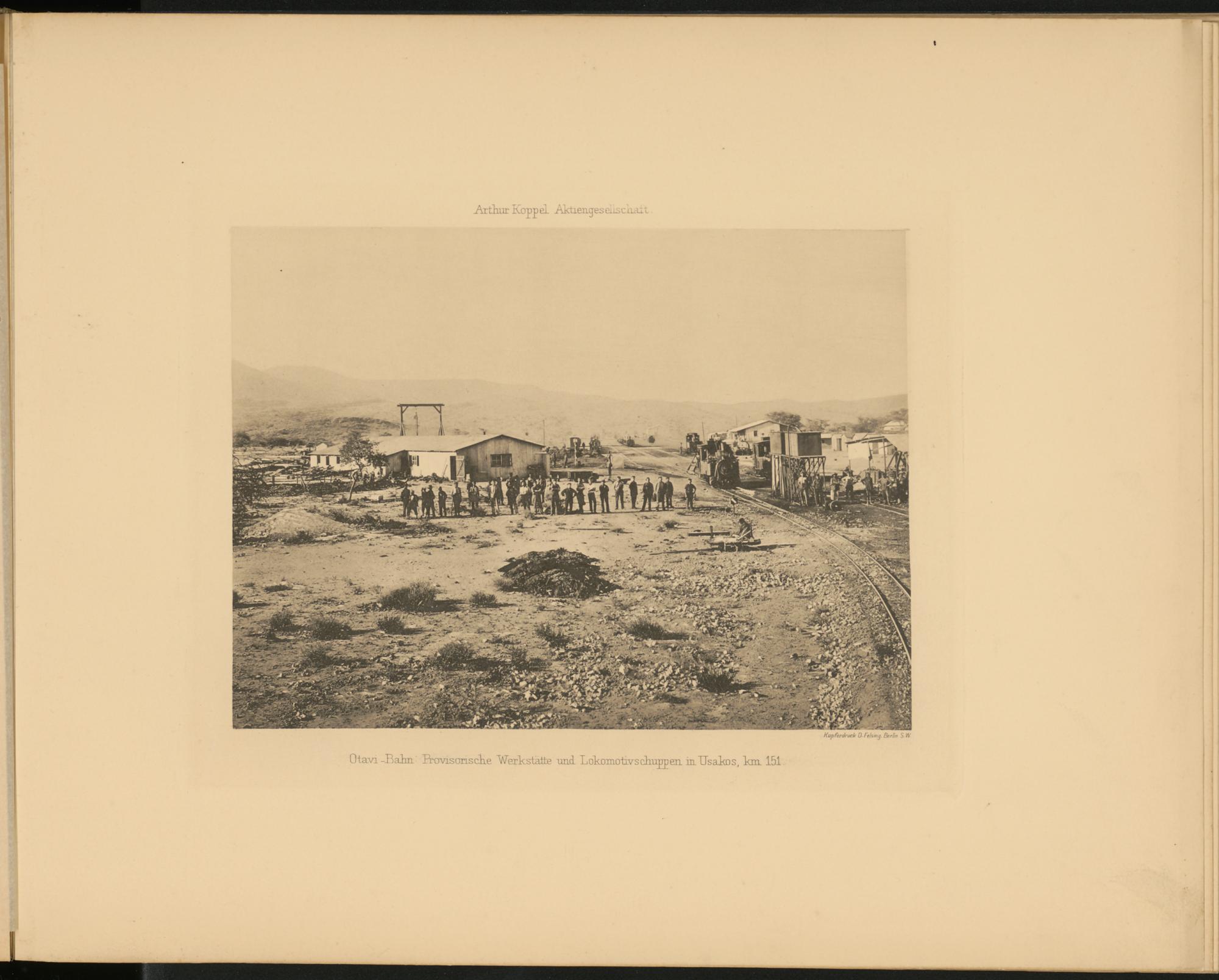 Ansicht provisorische Werkstätte und Lokomotivschuppen Usakos