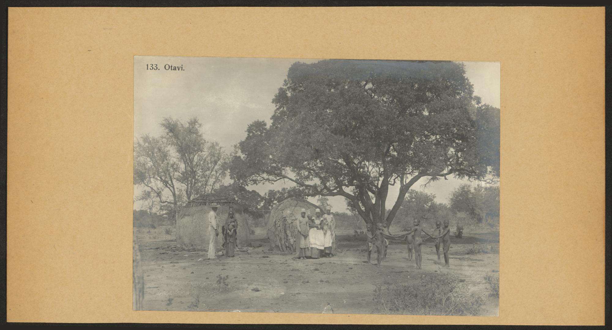 EA-003564: Personengruppe vor afrikanischem Dorf