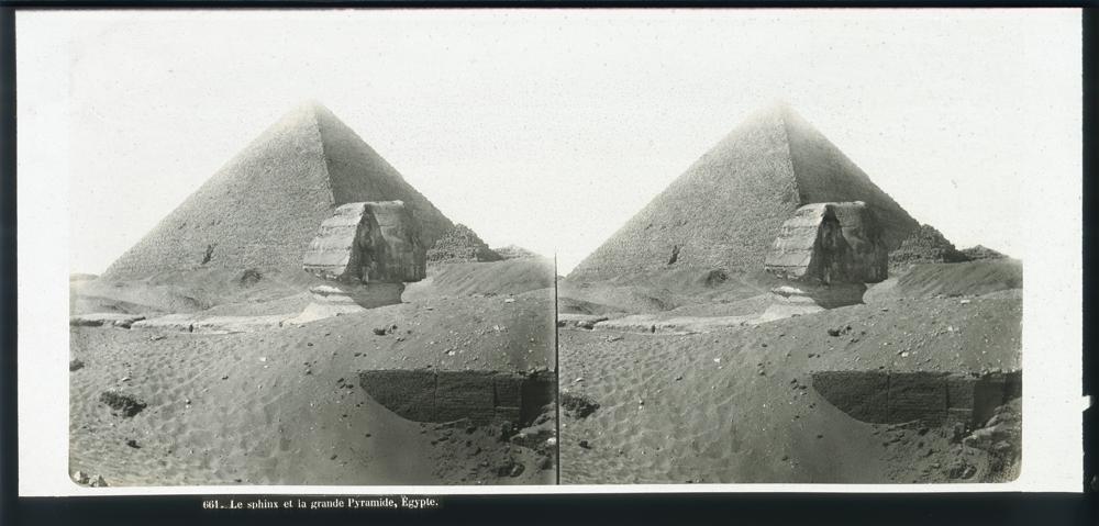 SD-01-3689: Die Sphinx und die große Pyramide (Cheops-Pyramide), Ägypten