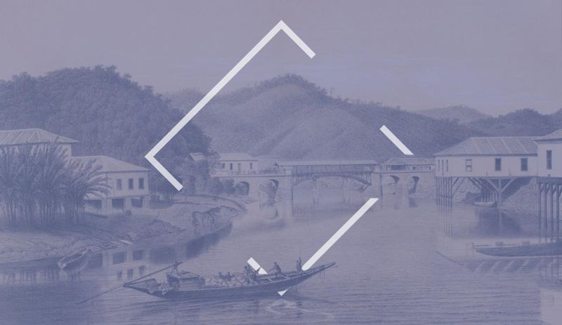In: Brasilien Dom Pedro II Eisenbahn, (Peter II Kaiser von Brasilien)Rio de Janeiro (Stadt), 1865Brücke über den Fluss "sacra familia"