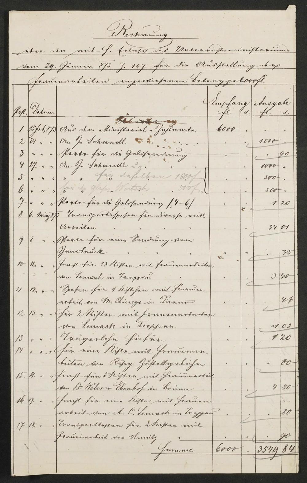 WAW-0006-OL: Rechnung Frauenpavillon 1873
