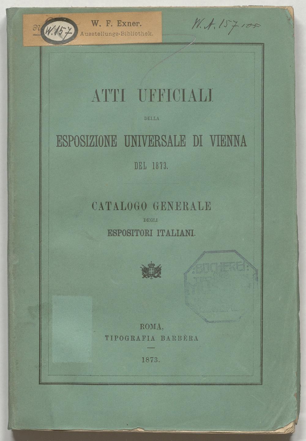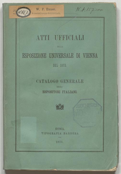 BIBL-WA157: Atti ufficiali della esposizione universale di Vienna del 1873 : Catalogo generale degli espositori italiani