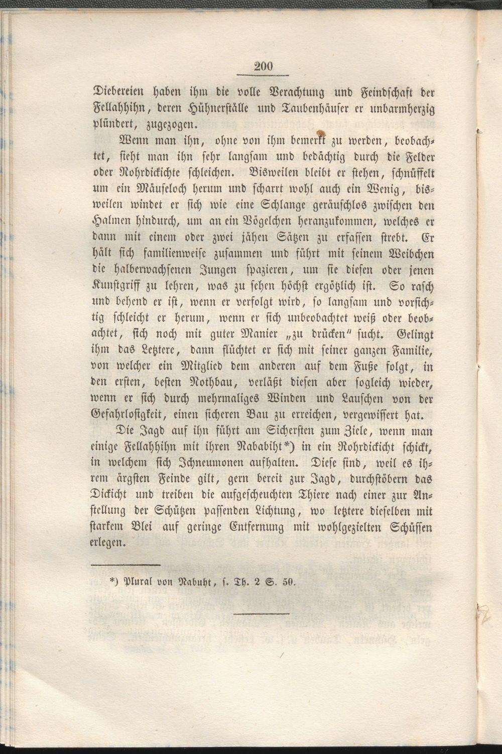 Die Jagd auf ihn führt am Sichersten zum Ziele, wenn man einige Fellahhihn mit ihren Nababiht*) in ein Rohrdickicht schickt, in welchem sich Jchneumonen aufhalten. Diese sind, weil es ihrem ärgsten Feinde gilt, gern bereit zur Jagd, durchstöbern das Dickicht und treiben die aufgescheuchten Thiere nach einer zur Anstellung der Schützen passenden Lichtung, wo letztere dieselben mit starkem Blei auf geringe Entfernung mit wohlgezieltcn Schüssen erlegen.