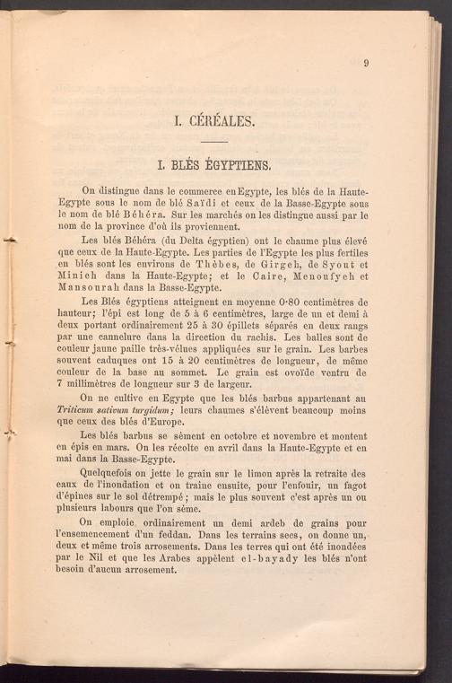 Les bles Behera (du Delta egyptien) ont le cliaume plus eleve que ceux de la Haute-Egypte. Les parties de l’Egypte les plus fertiles en bles sont les environs de Thebes, de Girgeh, de Sy out et Mini eh dans la Haute-Egypte; et le Caire, Menoufyeli et Man sour ah dans la Basse-Egypte.