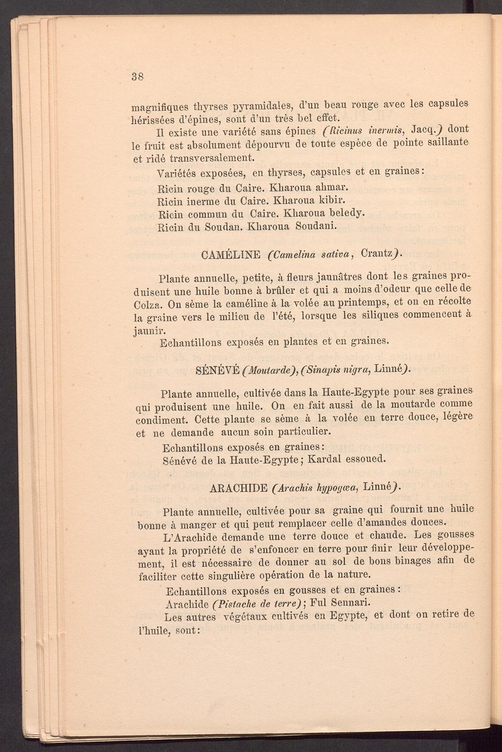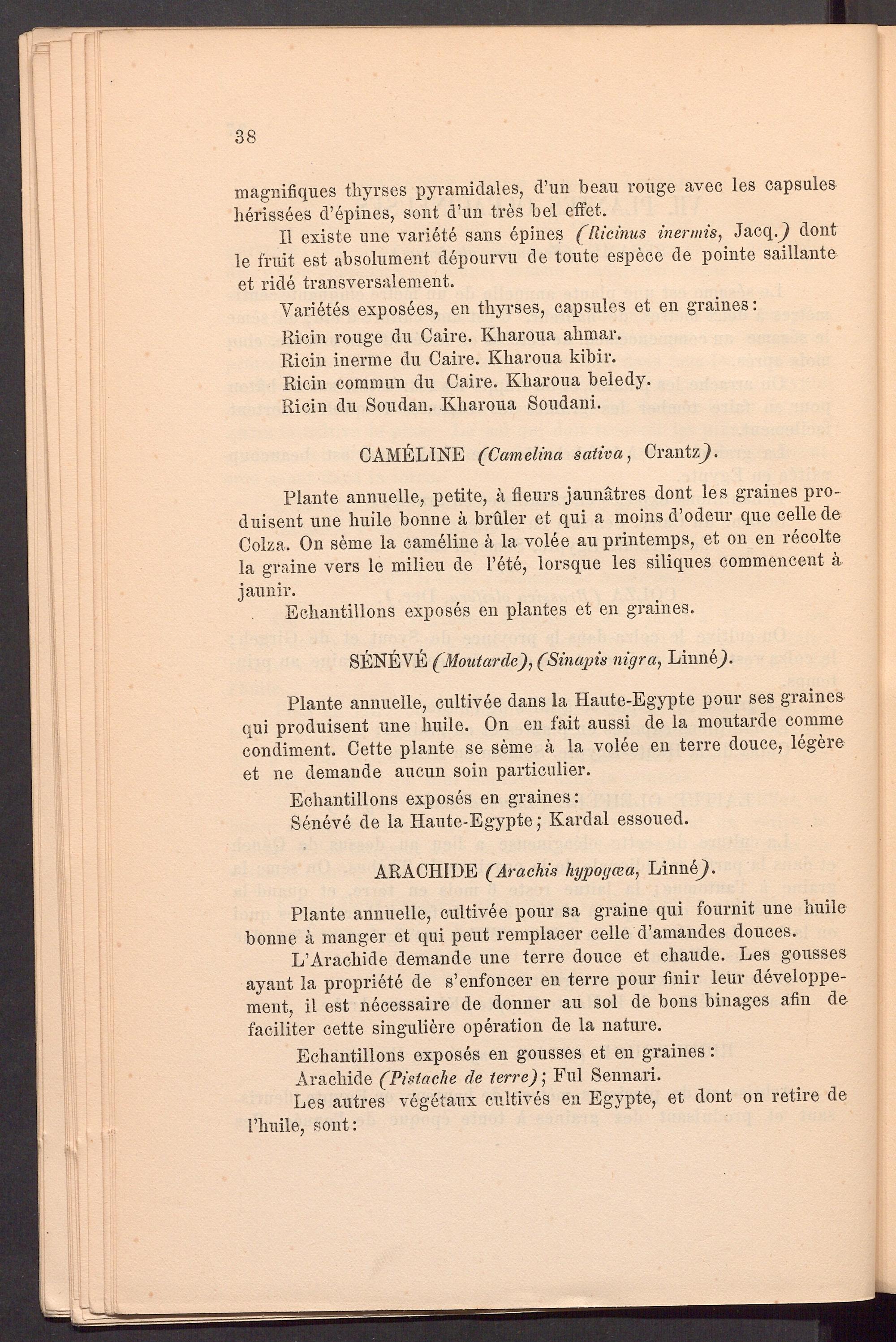 Les autres vegetaux cultives en Egypte, et dont on retire de 1’huile, sont: