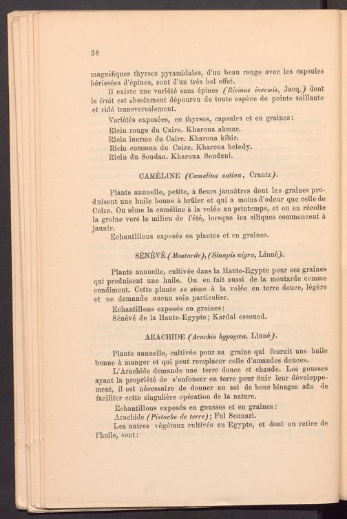 Plante annuelle, cultivee dans la Haute-Egypte pour ses graines qui produisent une huile. On en fait aussi de la moutarde comme condiment. Cette plante se seme h la volee en terre douce, legere et ne demande aucun soin particulier.